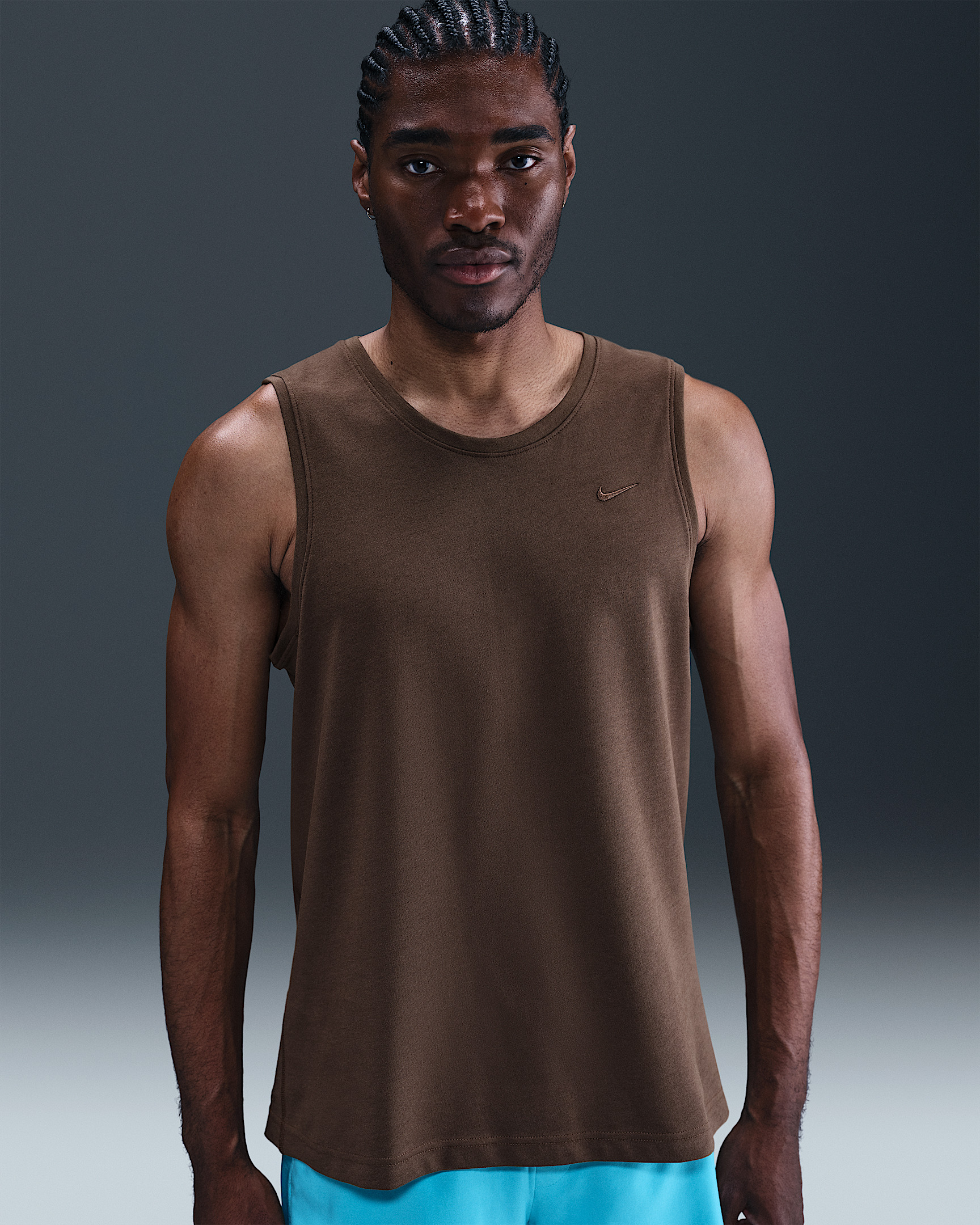 Run, spin, lift, stretch—no matter where your workout takes you, we have you covered in the sweat-wicking Primary Tank. It's ultra soft and comfortable, with underarm ventilation to help keep you cool during your reps. Benefits - Nike Dri-FIT technology moves sweat away from your skin for quicker evaporation, helping you stay dry and comfortable. - Knit fabric feels super soft against the skin. - Embroidered underarm eyelets help increase ventilation to keep you cool. Product Details - Embroidered Swoosh - Ribbed neckband - Body: 60-62% cotton/38-40% polyester. - Material percentage may vary. Check label for actual content. - Machine wash - Imported - Shown: Baroque Brown/Baroque Brown - Style: DV9833-237 SIZE & FIT Model is wearing size M and is 6′2″188cm Standard fit: easy and traditional Fits large; we recommend ordering a size down
