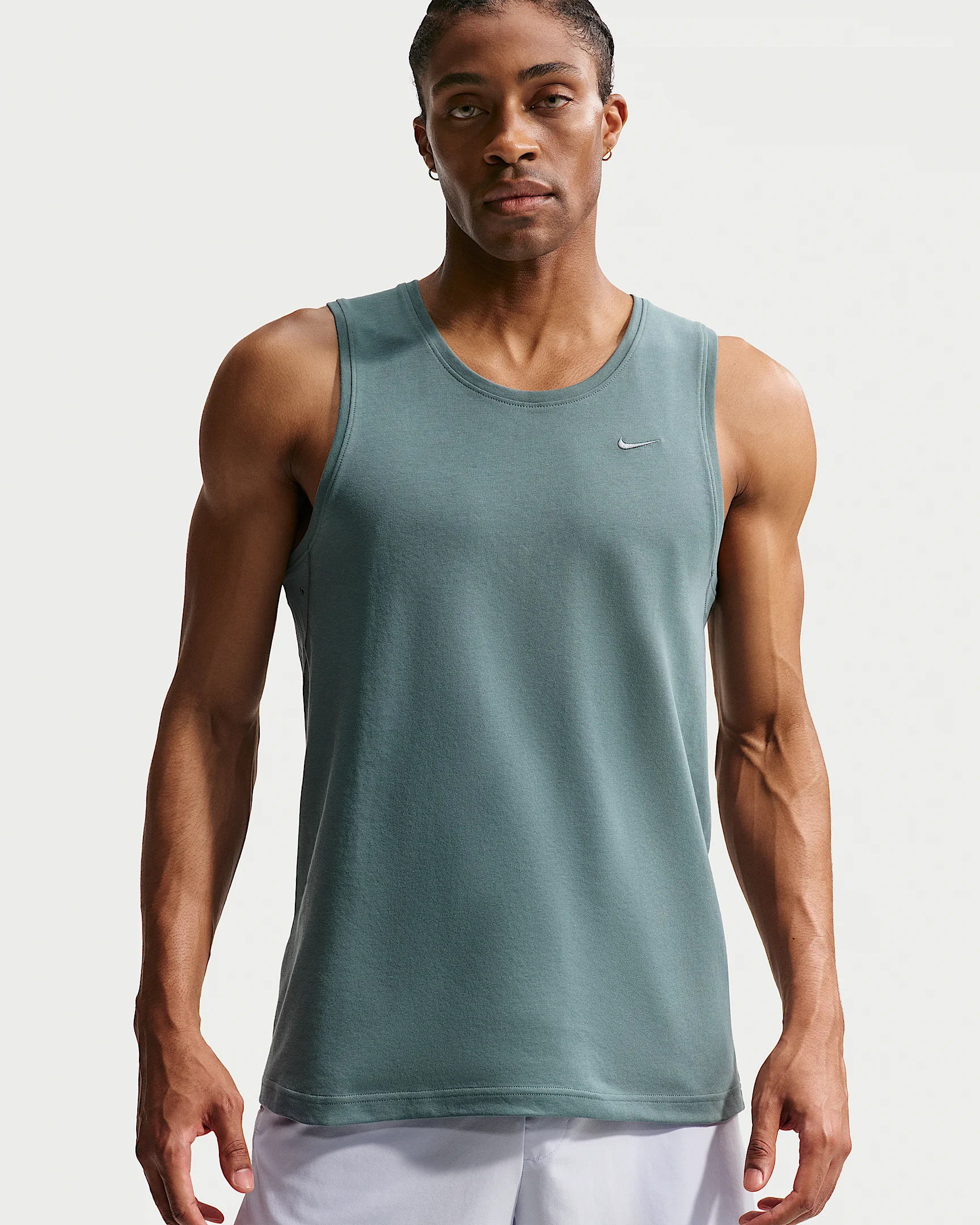 Run, spin, lift, stretch—no matter where your workout takes you, we have you covered in the sweat-wicking Primary Tank. It's ultra soft and comfortable, with underarm ventilation to help keep you cool during your reps. Benefits - Nike Dri-FIT technology moves sweat away from your skin for quicker evaporation, helping you stay dry and comfortable. - Knit fabric feels super soft against the skin. - Embroidered underarm eyelets help increase ventilation to keep you cool. Product Details - Embroidered Swoosh - Ribbed neckband - Body: 60-62% cotton/38-40% polyester. - Material percentage may vary. Check label for actual content. - Machine wash - Imported - Shown: Mineral Slate/Mineral Slate - Style: DV9833-382 SIZE & FIT Model is wearing size M and is 6′2″188cm Standard fit: easy and traditional Fits large; we recommend ordering a size down