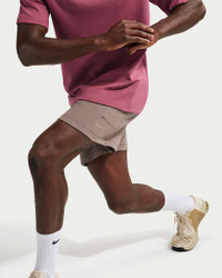 Move through your workout and into your day with these versatile shorts. Named for its superfine yarns and tight-knit construction, our stretchy NanoKnit fabric is lightweight and ultrasoft. We paired it with our sweat-wicking tech and UV protection to turn these shorts into a performance essential. Benefits - Nike Dri-FIT technology moves sweat away from your skin for quicker evaporation, helping you stay dry and comfortable. - Elastic waistband with drawcord helps you find your perfect fit. - Zippered pockets pair with an internal media pocket to give you secure storage. - Flat seams help reduce chafing. Product Details - 7" inseam - Embroidered Swoosh logo - Body: 90% polyester/10% spandex. Pocket bag knuckle side: 75% polyester/13% cotton/12% rayon. - Machine wash - Imported - This product provides UVA and UVB protection from the sun in the areas covered by the garment. To protect exposed areas, the use of good quality sunscreen is recommended. - Shown: Mink Brown/Mink Brown - Style: II1310-214 SIZE & FIT Model is wearing size M and is 6′0″183cm Standard fit: easy and traditional