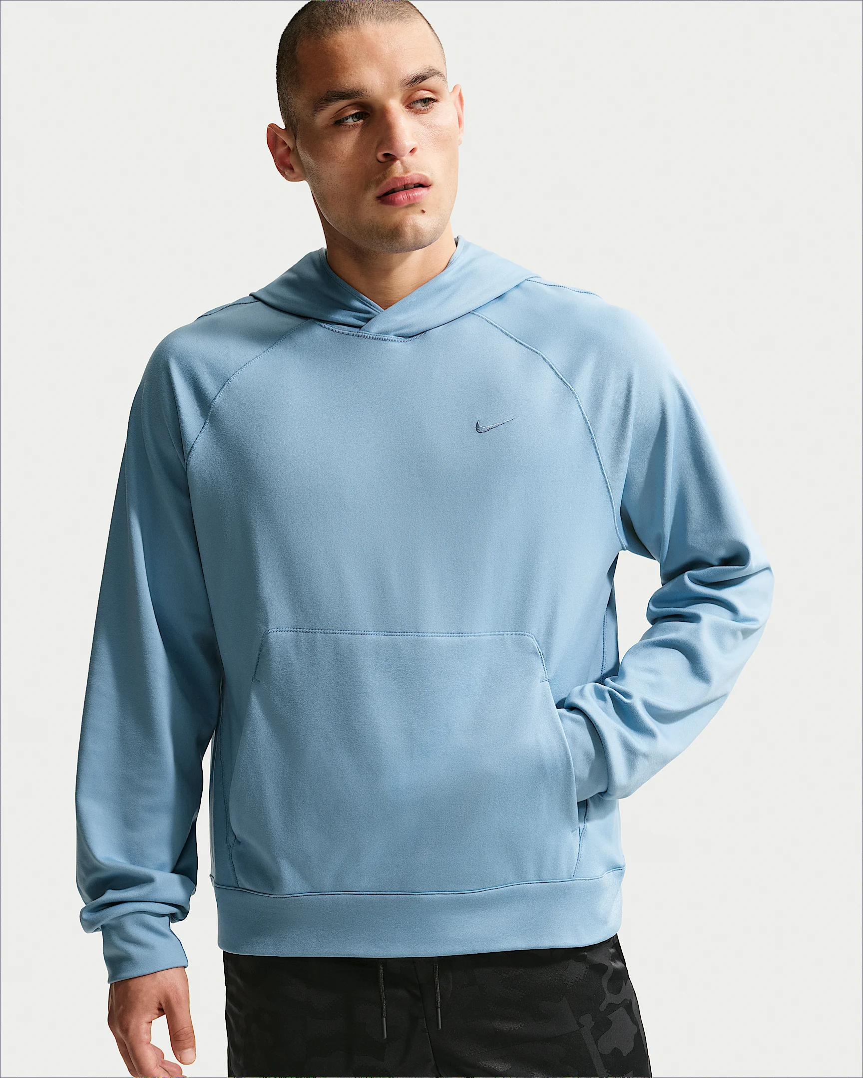 Move through your workout and into your day in this versatile hoodie. Named for its superfine yarns and tight-knit construction, our stretchy NanoKnit fabric is lightweight and ultrasoft. We paired it with our sweat-wicking tech and UV protection to make this layer a performance essential. Benefits - Nike Dri-FIT technology moves sweat away from your skin for quicker evaporation, helping you stay dry and comfortable. - Front pouch pocket contains a smaller media pocket for added storage. - Embroidered underarm eyelets add ventilation to help you stay cool. - Modified raglan-style sleeves allow for a full range of motion. - Low-profile seams add softness. Product Details - Embroidered Swoosh logo - Body: 90% polyester/10% spandex. Hood lining: 75% polyester/13% cotton/12% rayon. - Machine wash - Imported - This product provides UVA and UVB protection from the sun in the areas covered by the garment. To protect exposed areas, the use of good quality sunscreen is recommended. - Shown: Work Blue/Work Blue - Style: II1304-486 SIZE & FIT Model is wearing size M and is 6′1″185cm Standard fit: easy and traditional