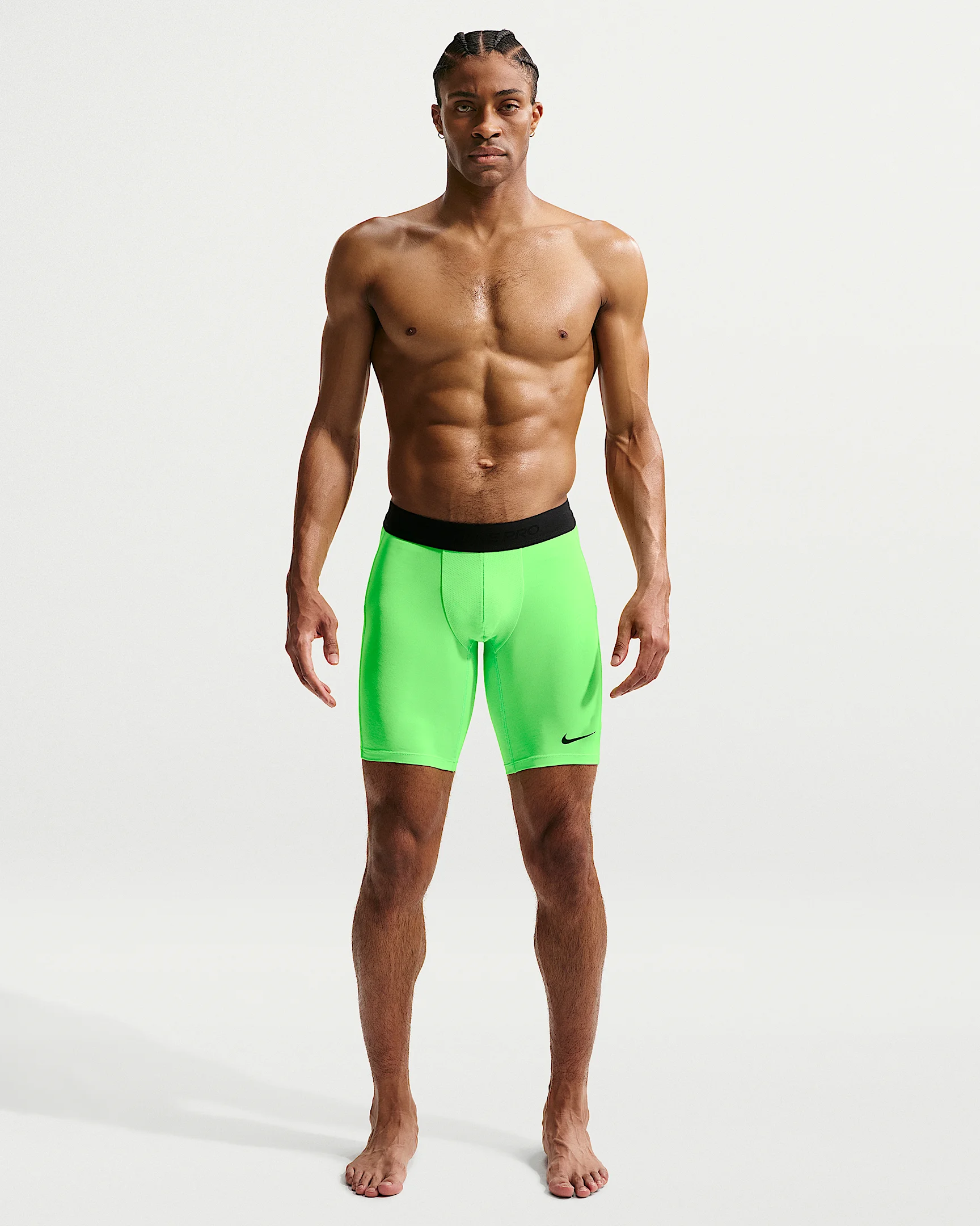 The Nike Pro collection is about feeling confident trying your best no matter where you are on your exercise journey. These 9" shorts have a smooth and stretchy feel that's made to perform for all your favorite sports and activities. Benefits - Nike Dri-FIT technology moves sweat away from your skin for quicker evaporation, helping you stay dry and comfortable. - Stretchy knit fabric gives a body-hugging feel so you can move naturally through your workouts and activities. - Soft and stretchy waistband sits snug above your hips. - Side pocket helps store small items, like keys or a card. Product Details - 9" inseam - Body: 90% polyester/ 10% spandex. Mesh: 92% polyester/ 8% spandex. Elastic: 58% polyester/ 28% nylon/ 14% spandex. - Machine wash - Imported - Shown: Green Strike/Black - Style: FB7963-398 SIZE & FIT Model is wearing size M and is 6′2″188cm Tight fit: snug and form-fitting