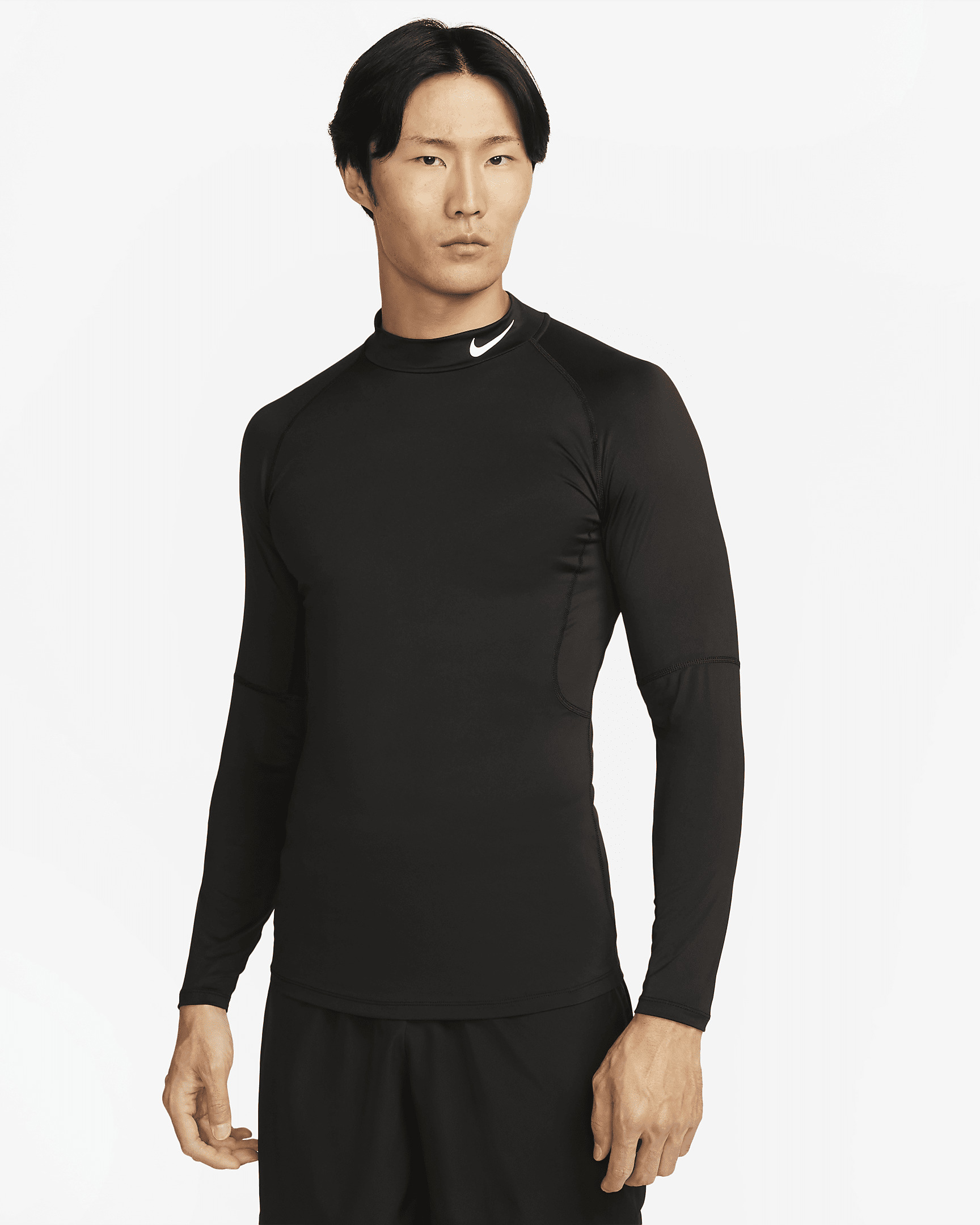The Nike Pro collection is all about feeling confident doing your best, no matter where you are on your workout journey. This slim-fitting mock-neck top has a smooth and stretchy feel for the sports and activities you love. Nike Dri-FIT technology moves sweat away from your skin for quicker evaporation, helping you stay dry and comfortable. An extended hem allows you to tuck in the shirt more securely or have improved coverage when it's untucked. Product Details - Mock-neck design - 90% polyester/10% spandex - Machine wash - Imported - Shown: Black/White - Style: FB7908-010 SIZE & FIT Model is wearing size M and is 6′2″188cm Tight fit: snug and form-fitting