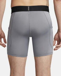 The Nike Pro collection is about feeling confident in trying your best. These shorts have a smooth and stretchy feel that's made to perform for all your favorite sports and exercises. Benefits - Nike Dri-FIT technology moves sweat away from your skin for quicker evaporation, helping you stay dry and comfortable. - Stretchy knit fabric gives a body-hugging feel so you can move naturally through your workouts and exercises. - Soft and stretchy waistband sits snug above your hips. - Side pocket helps store a small item, like your keys and card. Product Details - Body: 90% polyester/ 10% spandex. Mesh: 92% polyester/ 8% spandex. Elastic: 58% polyester/28% nylon/ 14% spandex. - Machine wash - Imported - Shown: Smoke Grey/Black - Style: FB7958-084 SIZE & FIT Model is wearing size M and is 6′2″188cm Tight fit: snug and form-fitting