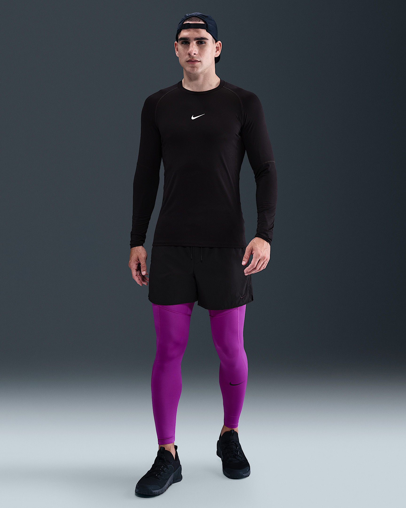 The Nike Pro collection is about feeling confident trying your best no matter where you are on your fitness journey. These slim-fitting tights have a smooth and stretchy feel that's made to perform during all your favorite sports and activities. Benefits - Nike Dri-FIT technology moves sweat away from your skin for quicker evaporation, helping you stay dry and comfortable. - Stretchy knit fabric gives a body-hugging feel so you can move naturally through your workouts and activities. - Soft and stretchy waistband sits snug above your hips. - Side pocket helps store small items, like keys and cards. Product Details - Body: 90% polyester/ 10% spandex. Mesh: 92% polyester/ 8% spandex. - Machine wash - Imported - Shown: Vivid Purple/Black - Style: FB7952-551 SIZE & FIT Model is wearing size M and is 6′2″188cm Tight fit: snug and form-fitting