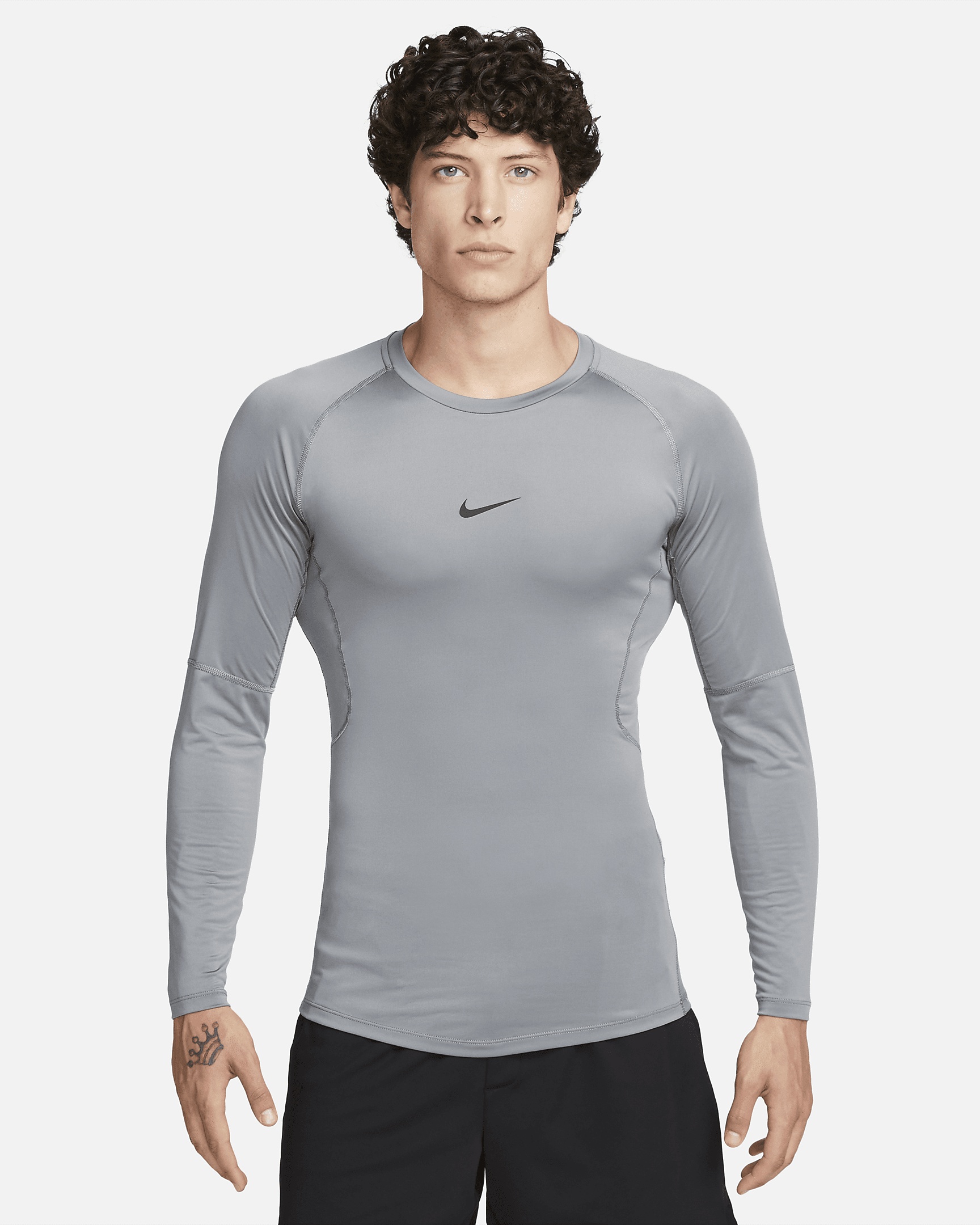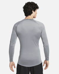 The Nike Pro collection is designed to help you feel confident pushing your limits, no matter how far along your exercise journey you are. This slim-fitting long-sleeve top has a smooth and stretchy feel perfect for high-intensity sports and activity. Extended hems in the front and back allow you to be comfortable while wearing the top tucked or untucked. Product Details - 90% polyester/ 10% spandex - Machine wash - Imported - Shown: Smoke Grey/Black - Style: FB7919-084 SIZE & FIT Model is wearing size M and is 6′1″185cm Tight fit: snug and form-fitting
