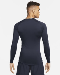 The Nike Pro collection is designed to help you feel confident pushing your limits, no matter how far along your exercise journey you are. This slim-fitting long-sleeve top has a smooth and stretchy feel perfect for high-intensity sports and activity. Extended hems in the front and back allow you to be comfortable while wearing the top tucked or untucked. Product Details - 90% polyester/ 10% spandex - Machine wash - Imported - Shown: Obsidian/White - Style: FB7919-451 SIZE & FIT Model is wearing size M and is 6′3″191cm Tight fit: snug and form-fitting