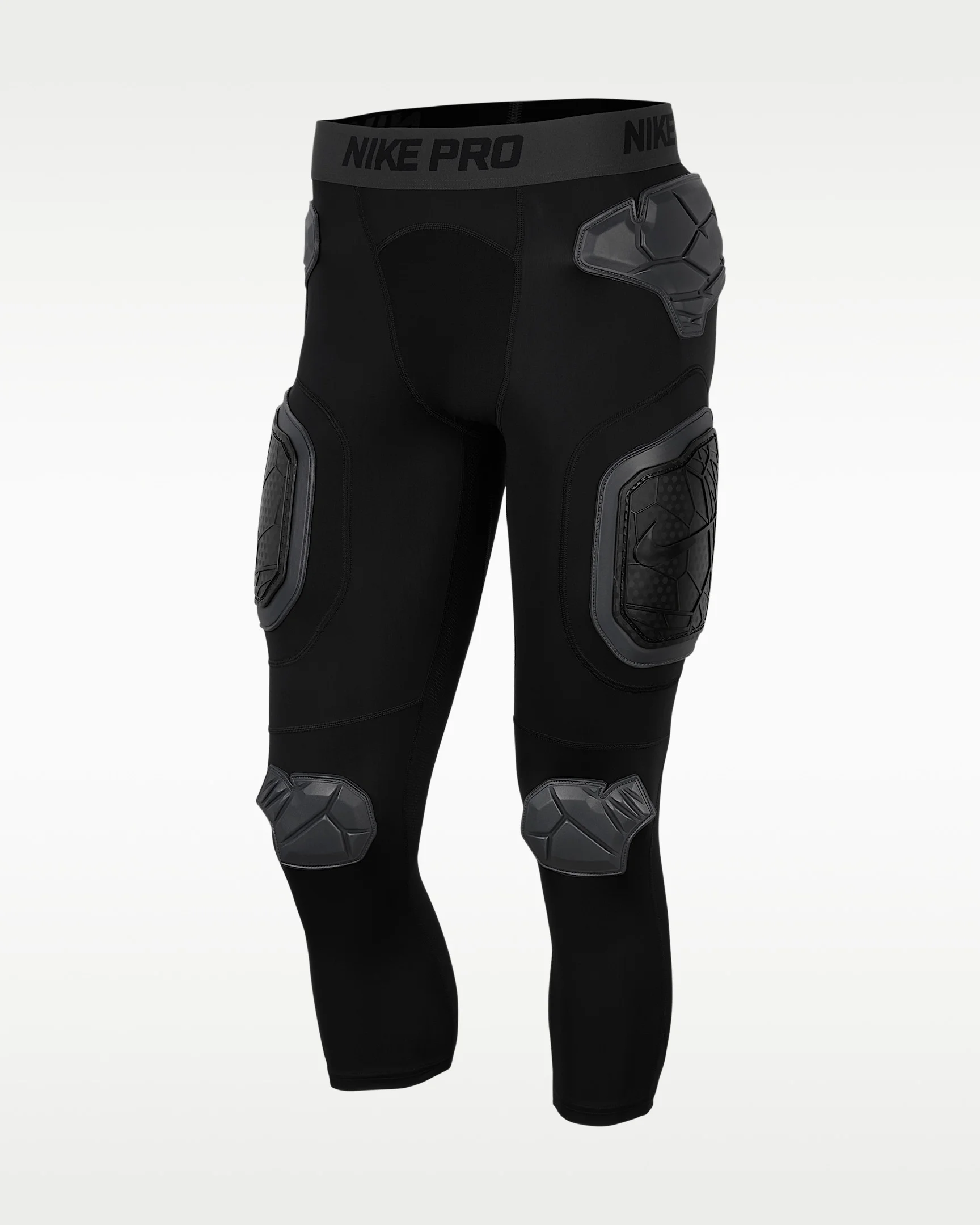 The Nike Pro HyperStrong tights integrate protective panels and foam padding into lightweight form-fitting fabric for enhanced impact absorption. Product Details - Flat seams - Elastic waistband - Body: 78% polyester/22% spandex. Panels/center front panel/center front lining: 82% polyester/18% spandex. Pad: 100% ethylene vinyl acetate. Plate: 100% polyethylene. - Machine wash - Imported - Shown: Black - Style: N1013486-068