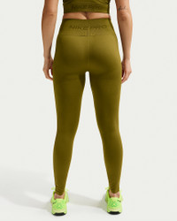 Lightweight and stretchy, these sweat-wicking leggings feature soft fabric which dries quickly to help you stay ready when your workout heats up. Ribbed panels provide a sculpting fit while a no-seam front offers a smooth and seamless look. Benefits - Nike Dri-FIT technology moves sweat away from your skin for quicker evaporation, helping you stay dry and comfortable. - No front seam helps keep the fabric from riding up, giving you a smooth fit and seamless look. - Soft and stretchy fabric has strategically placed ribbed zones for shaping. Product Details - Nike Pro branding on waistband - 47% polyester/38% nylon/15% spandex - Machine Wash - Imported - Shown: Olive Flak - Style: IF1208-368 SIZE & FIT Model is wearing size S and is 5′10″178cm Tight fit: snug and form-fitting 78 length: hits at ankle High-Waisted: sits at or above your natural waist for more coverage