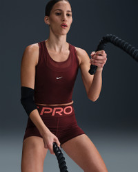 This tank's sheer mesh panels and moisture-wicking tech help keep you ready to sweat. Breathable panels at the hem give you a snug fit while inviting airflow. Product Details - Body: 83% polyester/17% spandex. Panels: 78% nylon/22% spandex. Elastic: 89% polyester/11% spandex. - Swoosh logo at center chest - Machine wash - Imported - Shown: Dark Team Red/White - Style: HJ1192-619 SIZE & FIT Model is wearing size S and is 5′10″178cm Tight fit: snug and form-fitting