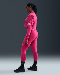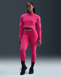 Warm up and work out in this roomy, sweat-wicking top. It's made with midweight French terry fabric (with unbrushed loops on the inside) that's structured, breathable and soft. Product Details - Cropped length - Printed Swoosh logo on chest - Printed graphics on sleeves - Body: 58% polyester/37% cotton/5% spandex. Rib: 56% polyester/41% cotton/3% spandex. - Machine wash - Imported - Shown: Rush Pink/Pink Foam/White - Style: HV3591-666 SIZE & FIT Model is wearing size S and is 5′9″175cm Loose fit: roomy and relaxed