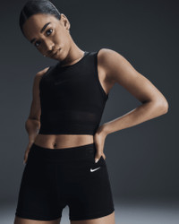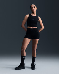 Don't be afraid to turn up the heat on your workout—these shorts are made with moisture-wicking tech and open-hole mesh panels to help keep things breezy. Smooth, stretchy fabric helps you stay comfortable through every squat and lunge. Benefits - Nike Dri-FIT technology moves sweat away from your skin for quicker evaporation, helping you stay dry and comfortable. - Mesh elastic waistband sits snugly against your skin without pinching or binding. Product Details - Body: 78% polyester/22% spandex. Panels: 81% polyester/19% spandex. Waistband: 92% nylon/8% spandex. - Machine wash - Imported - Shown: Black/White - Style: FN3336-010 SIZE & FIT Tight fit: snug and form-fitting Medium support: feels ke a snug hold to keep everything in place Mid-Rise: sits just below your natural waist (smallest part of your torso)