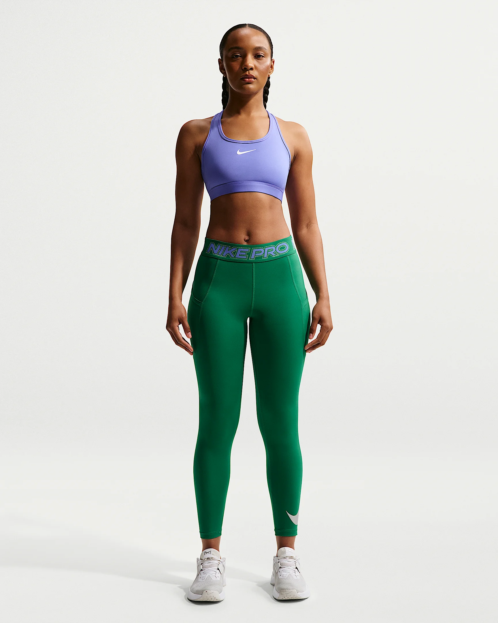 Go hard, stay cool. Lightweight and stretchy, these smooth Nike Pro leggings dry quickly to help you stay cool when your workout heats up. Benefits - Nike Dri-FIT technology moves sweat away from your skin for quicker evaporation, helping you stay dry and comfortable. - Lightweight and stretchy, the smooth fabric dries quickly to help you stay ready when your workout heats up. - A soft jacquard elastic waistband sits snugly against your skin without pinching or binding. Product Details - Jacquard elastic waistband with "Nike Pro" branding - 78-83% polyester/17-22% spandex - Material percentages may vary. Check label for actual content. - Machine Wash - Imported - Shown: Malachite/Sapphire/White - Style: IB9142-365 SIZE & FIT Model is wearing size S and is 5′7″170cm Tight fit: snug and form-fitting 78 length: hits at ankle Mid-Rise: sits just below your natural waist (smallest part of your torso)
