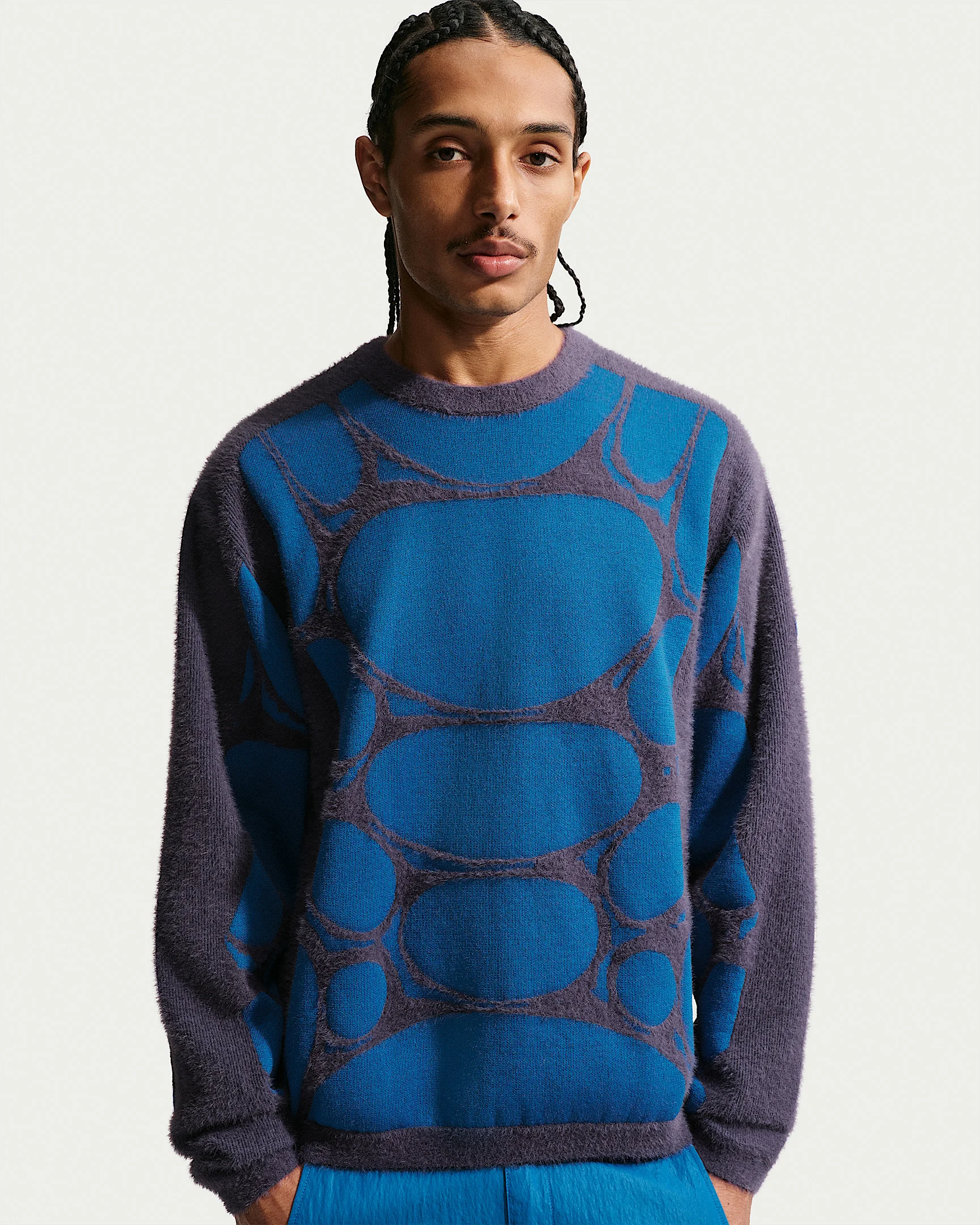 Loose-fitting and fuzzy, this sweater pulls inspiration from Nike DNA and morphs it into something nearly alien. Product Details - 49% nylon/33% polyester/17% rayon/1% spandex - Machine wash - Imported - Shown: Dark Raisin/Brilliant Blue/Voltage Green - Style: IF1272-573 SIZE & FIT Model is wearing size M and is 6′1″185cm Loose fit: roomy and relaxed