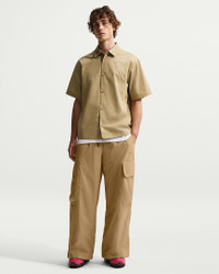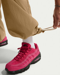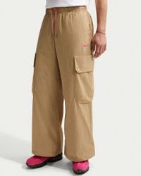 These expressive oversized cargos are crafted with a lightweight, semi-transparent ripstop that repels water. Elastic bungees offer flexibility with styling around your shoes. Benefits - Oversized fit is extra roomy through the seat and thighs. - Water-repellent finish helps keep you dry in wet weather. - An elastic waistband and external drawcord let you draw in a perfect fit. - Large cargo pockets have snap closures. Product Details - Silicone Nike Project F.R.O.G. branding - Hand pockets - Body: 100% nylon; Lining: 100% polyester. - Machine wash - Imported - Shown: Parachute Beige/Hyper Pink/White/Hyper Pink - Style: HV0907-297