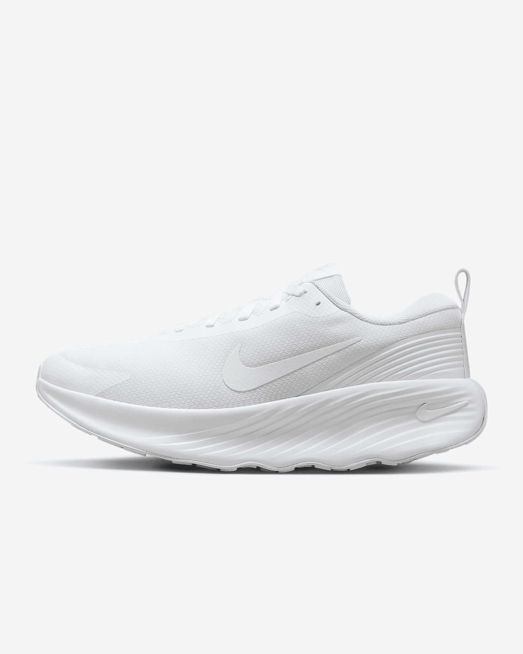 The Nike Promina makes every walk a soft ride. Its tall foam stack combined with a grooved rocker on the outsole provides high cushioning for all-day comfort. Benefits - High cushioning - Moderate stability - Moderate flexibility Product Details - Soft foam collar - Widened forefoot, arch and toe box - Durable outsole pattern for traction - Not intended for use as Personal Protective Equipment (PPE) - Shown: White/Pure Platinum - Style: FV5285-100