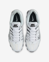 The Nike Reax 8 TR combines lightweight containment with responsive cushioning for premium performance while training. Benefits - Nike Reax cushioning in the heel gives you a responsive ride. - Dynamic lacing system provides a secure feel around the midfoot. - Flex grooves allow your foot to move naturally. - Solid rubber pods provide durable traction. Product Details - Shown: White/Classic Charcoal/Pure Platinum/Metallic Silver - Style: 621716-108