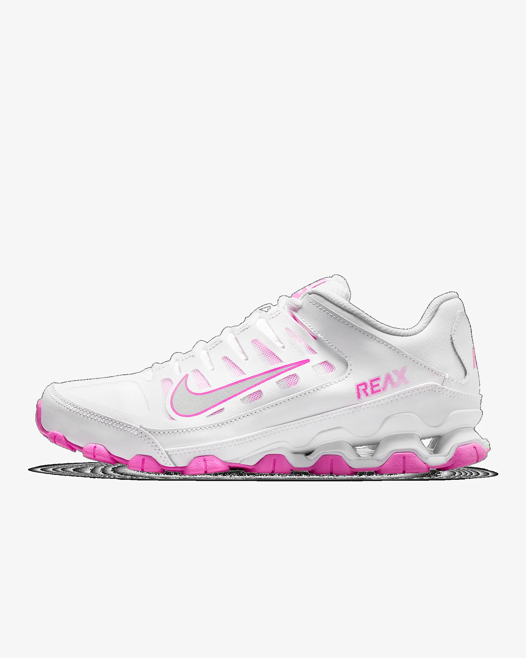 You want to make gains in the room? Grind. You want to make those gains great? Go with the Nike Reax 8. With super responsive foam fueling every rep, you can go from the rack to the cardio room or wherever you need to put work in. Time to get to it. Product Details - Shown: White/Playful Pink/Metallic Silver - Style: IO2400-104