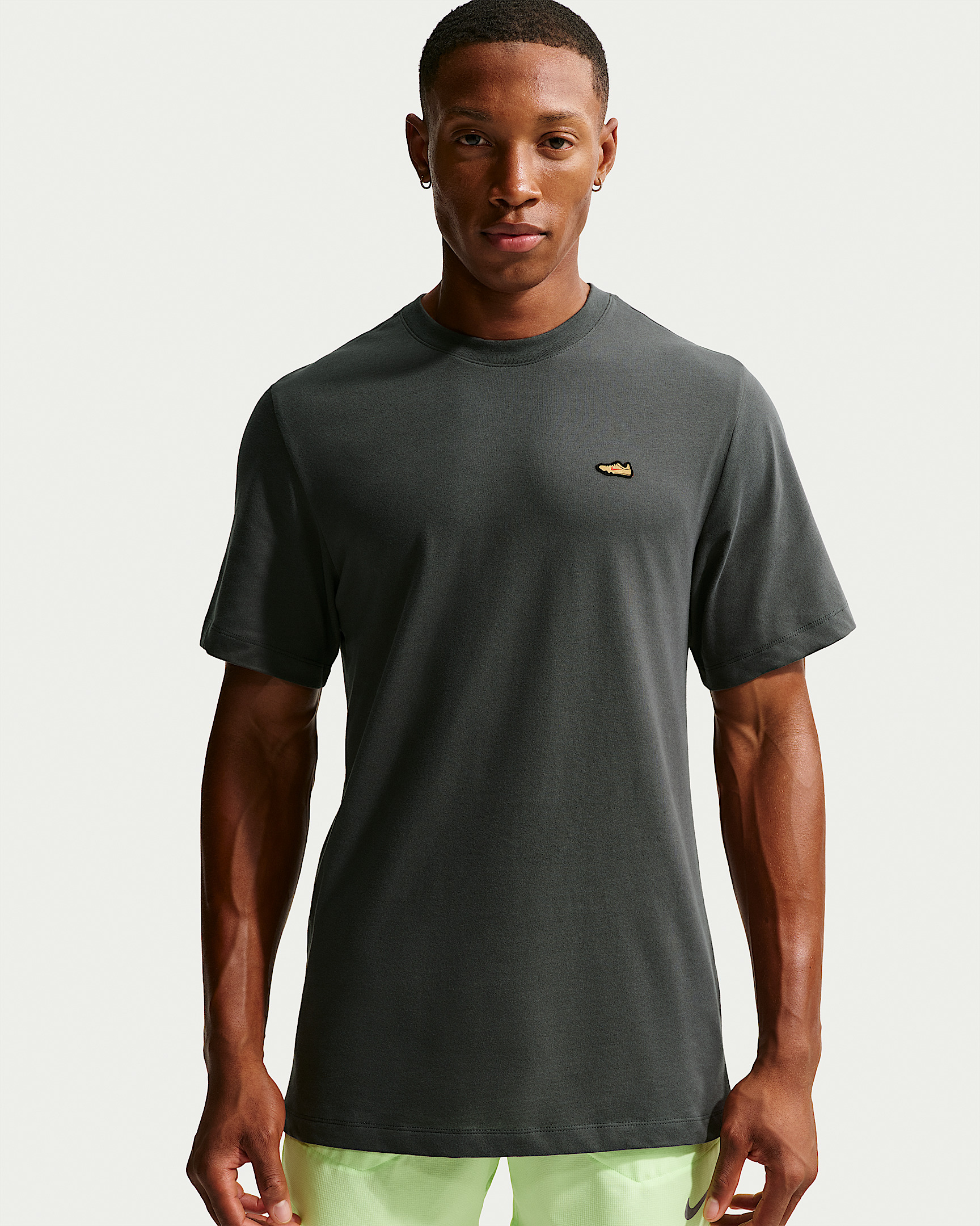 Classic and comfortable, this soft cotton blend tee has an easy fit and sweat-wicking technology to help you stay dry. Benefits - Nike Dri-FIT technology moves sweat away from your skin for quicker evaporation, helping you stay dry and comfortable. - Classic fit for an easy feel. Product Details - Golden spikes patch - Nike Running graphic - 57% cotton/43% polyester - Machine wash - Imported - Shown: Anthracite - Style: IH4414-060 SIZE & FIT Model is wearing size M and is 5′11″179cm Standard fit: easy and traditional