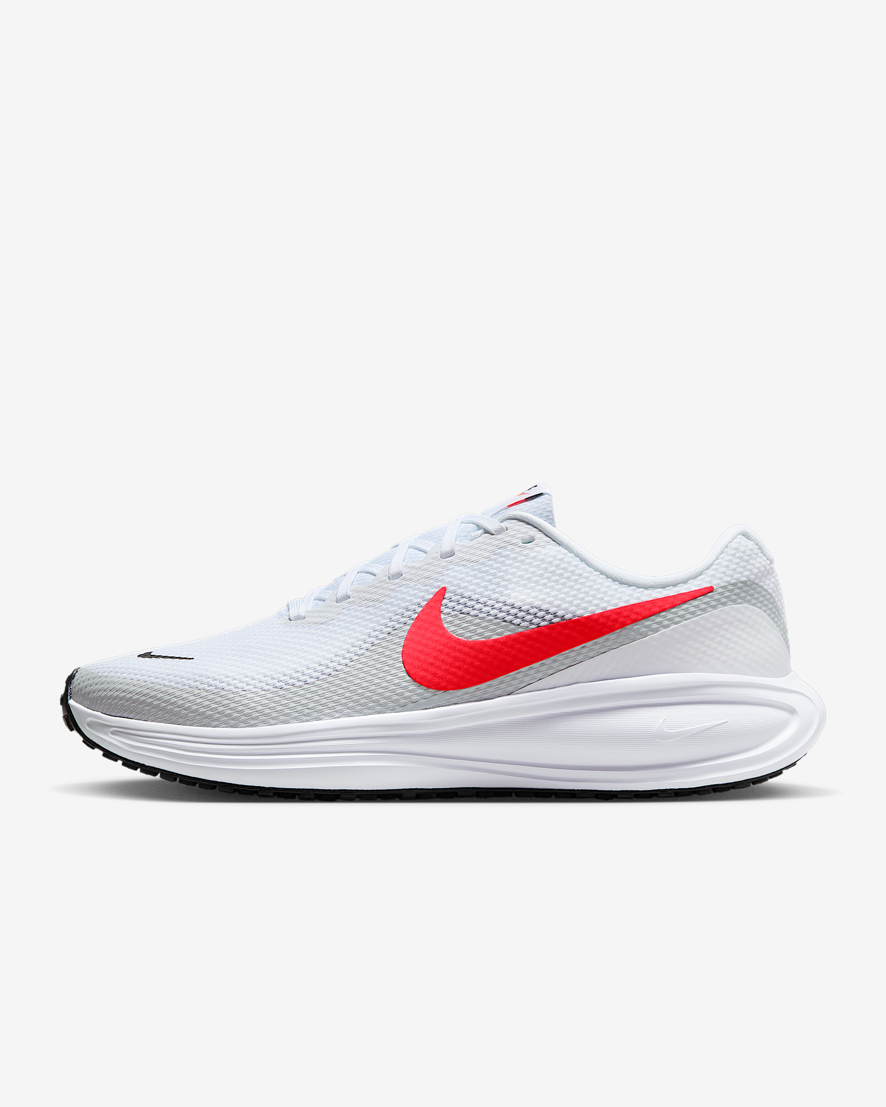 The Revolution 8 is an evolution of your faithful favorite. Every stride is cushioned thanks to a foam midsole and a flexible forefoot that makes your steps soft. Plus, the mesh upper is even more breathable than previous iteration, so you can run in cool, collected comfort. Product Details - Weight: Approx. 292g/10.3oz (Men's US 10) - Heel-to-toe drop: 10mm - Shown: White/Pure Platinum/Black/Bright Crimson - Style: HQ1996-100