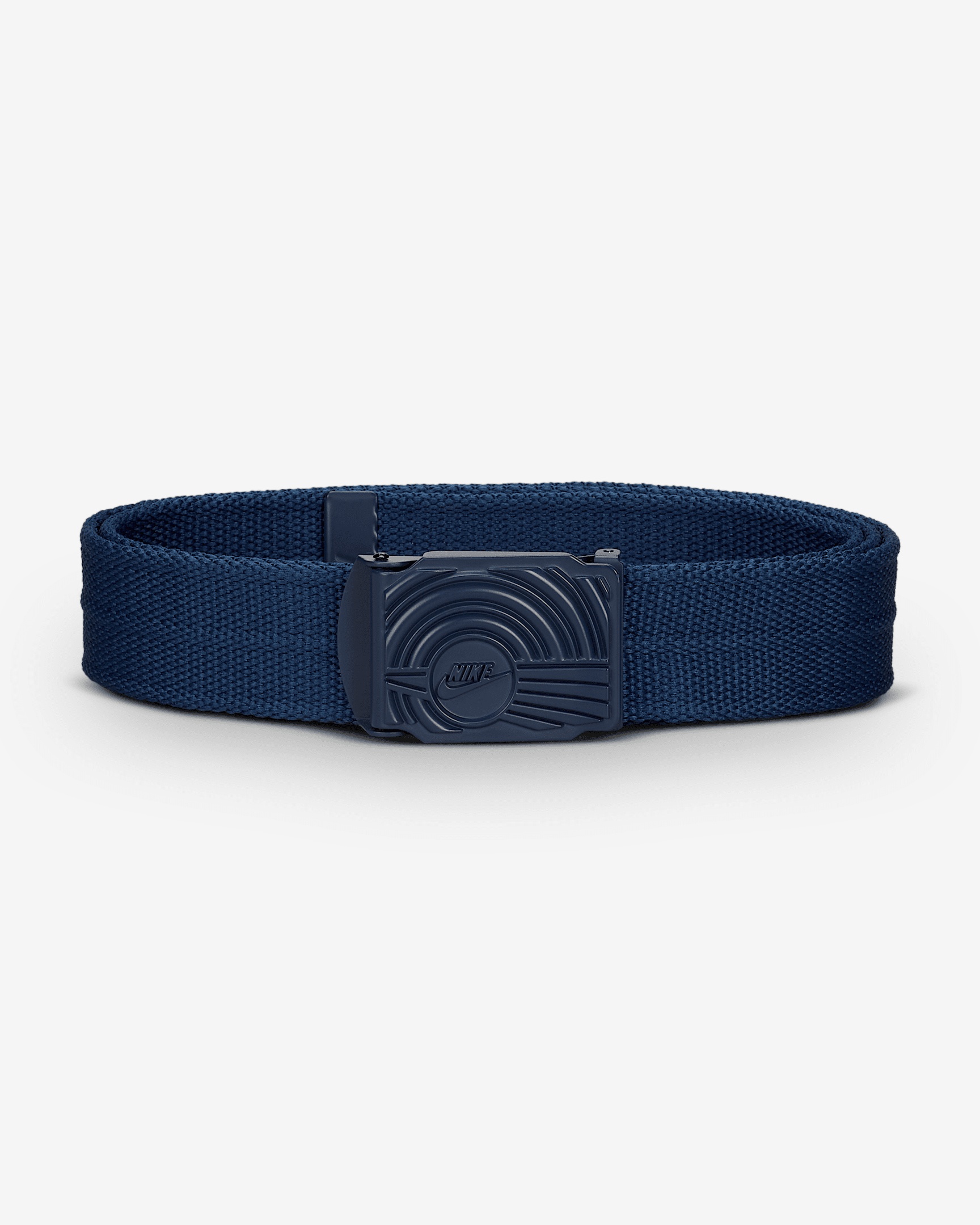 Rock a belt with a buckle featuring the Nike Dunk's classic outsole pattern on the front to show your love for the iconic shoe. Benefits - Matte-colored buckle hardware matches strap. - Cut-to-fit design creates customizable fit. Product Details - 38-mm width - Fits up to size 42 - 100% polyester - Spot clean - Imported - Shown: Navy - Style: 180010-405