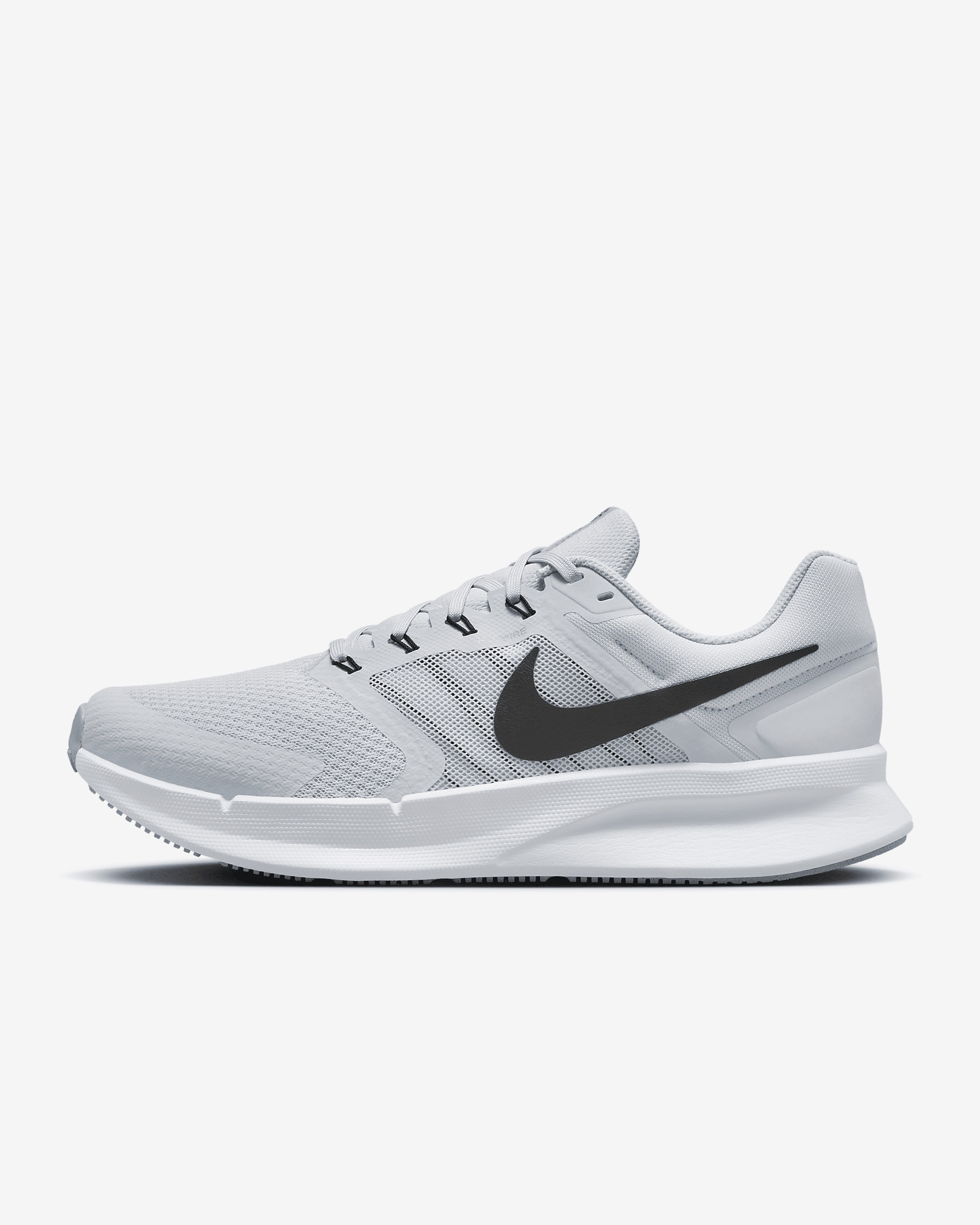 No matter the run, the Swift 3 will be there with undying support and devotion. It can help you get out the door for an easy 3 at the end of the day or an intense 2-mile there-and-back with a modified design that’s supportive, durable and comfortable all around. They’ll help you conquer short distances, sure, but also get you from point A to point B as you navigate the ever-changing rhythms of everyday life. Product Details - Heel overlay for added security - Mesh by toe for breathability - Flex grooves on rugged rubber outsole for flexibility - Shown: Photon Dust/White/Wolf Grey/Black - Style: DR2695-005 SIZE & FIT Fits small; we recommend ordering a half size up