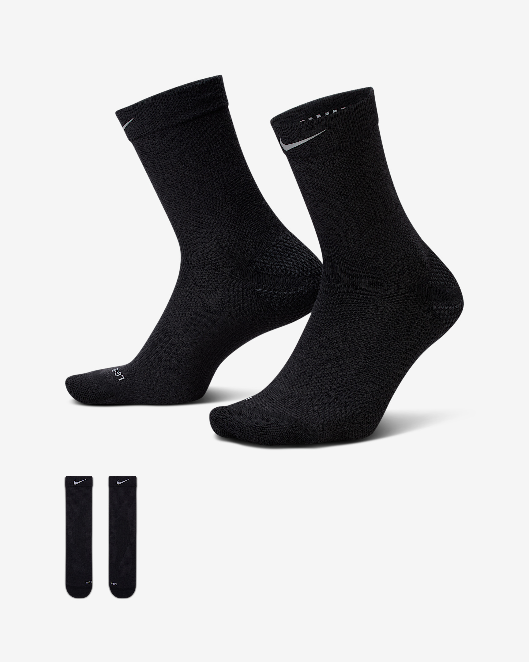 Introducing Nike's newest running socks. Designed to give you a locked-in fit, they feature sweat-wicking wool fabric and strategically placed cushioning and support. This means you can forget the fit and focus on your miles. Product Details - 59% wool/20% nylon/16% polyester/5% spandex - Machine wash - Imported - Not intended for use as Personal Protective Equipment (PPE) - Shown: Black/Dark Smoke Grey/Dark Smoke Grey - Style: IF2509-010