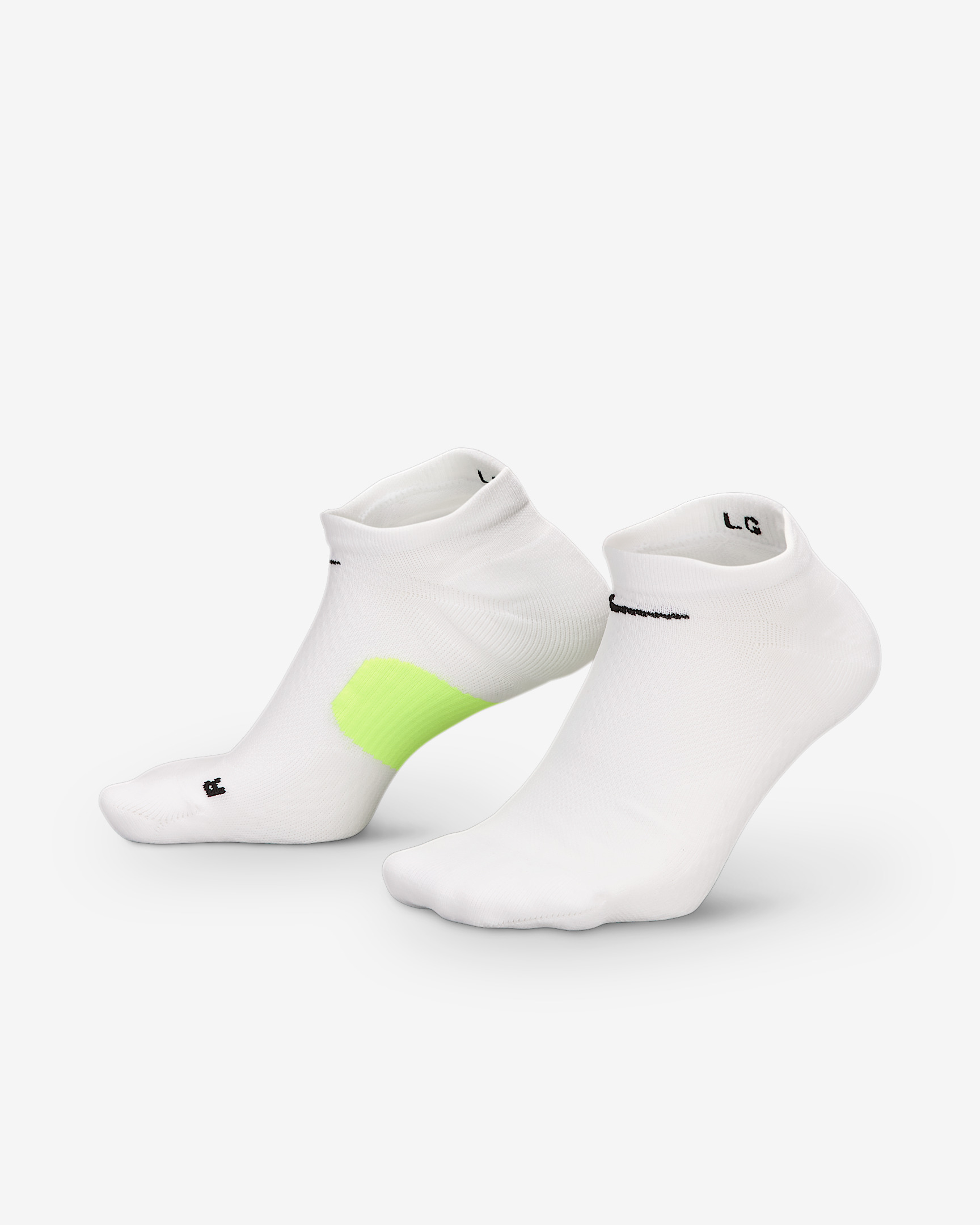 Introducing Nike's newest running socks. Designed to give you a locked-in fit, they feature sweat-wicking technology and strategically placed cushioning and support. This means you can forget the fit and focus on your miles. Product Details - Reflective details - Not intended for use as Personal Protective Equipment (PPE) - 94% polyester/6% spandex - Machine wash - Imported - Shown: White/Volt/Black - Style: HV6937-100
