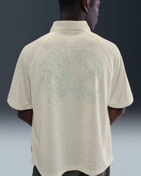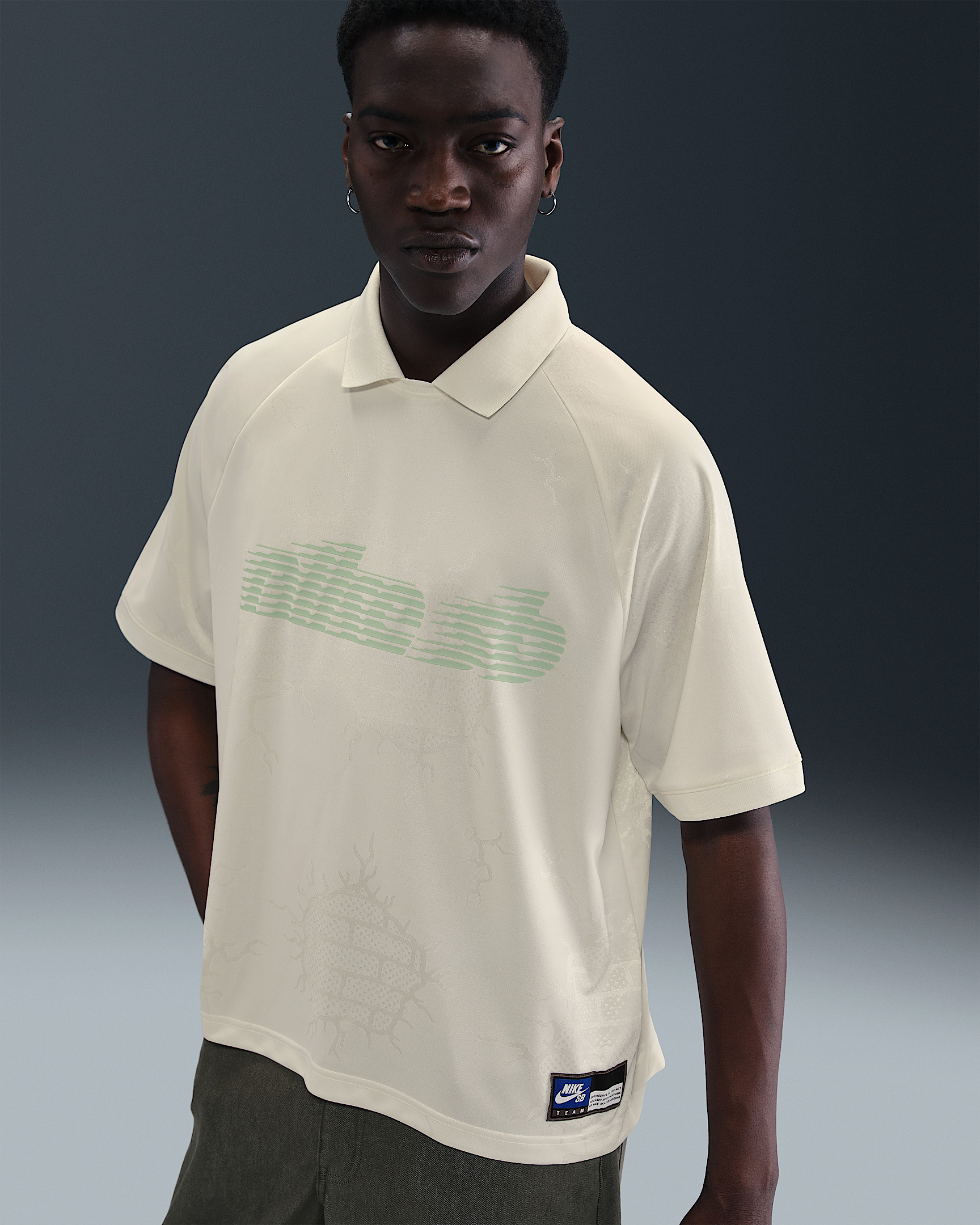 This jersey features a jacquard fabric with a knit-in brick design. The stretchy fabric also has Dri-FIT technology for sweat-wicking comfort. Benefits - Nike Dri-FIT technology moves sweat away from your skin for quicker evaporation, helping you stay dry and comfortable. - Oversized fit is designed to be extra roomy through the chest. Product Details - Nike SB jock tag - Ribbed collar and sleeves - Body: 100% polyester; Rib: 97% polyester/3% spandex. - Machine wash - Imported - Shown: Sail - Style: HV4457-133 SIZE & FIT Model is wearing size M and is 6′3″189cm Oversized fit: exaggerated and spacious