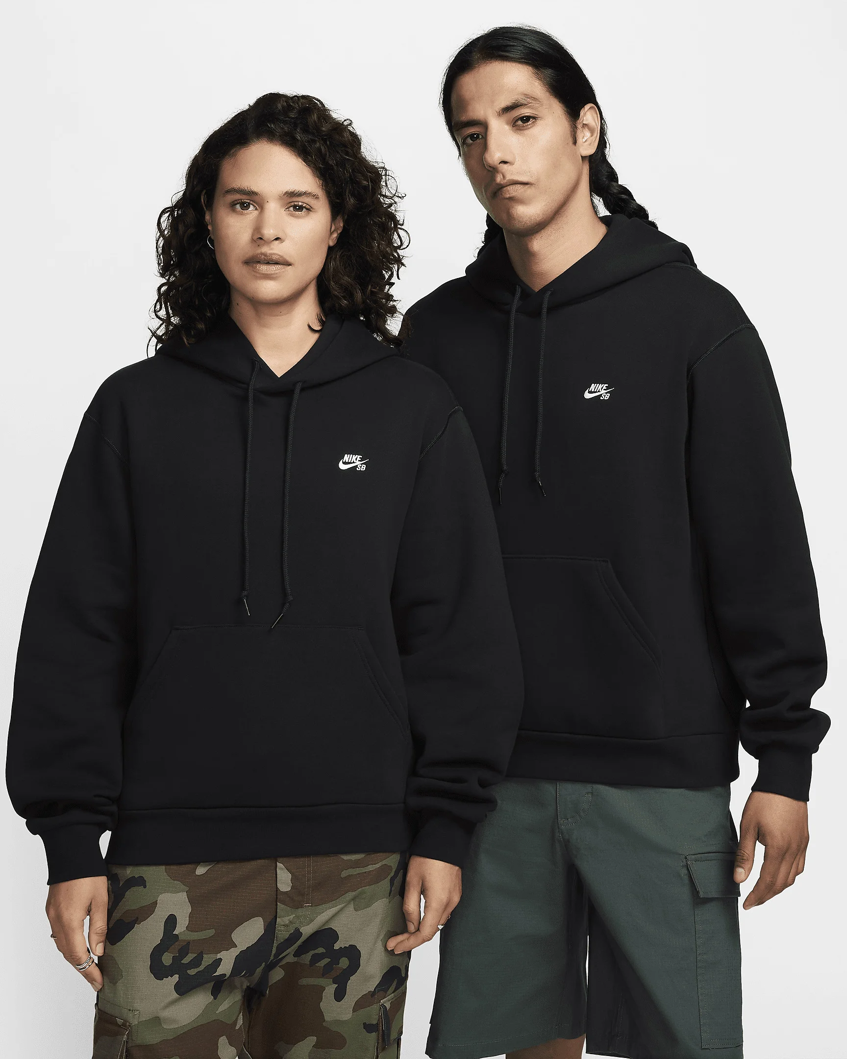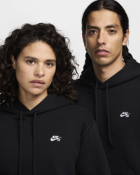 Elevate your essentials with this soft, brushed fleece hoodie. The roomy fit gives you space to move and layer. The embroidered Nike SB logo on the chest gives it a clean finish. Benefits - Our midweight brushed fleece feels extra soft on the inside and smooth on the outside, helping you stay cozy while keeping its structured shape. - Designed to feel roomy through the chest and body for easy movement and layering. Product Details - Embroidered Nike SB logo at left chest - Stretchy ribbed cuffs and hem - Body/Hood Lining: 82% cotton/18% polyester. - Machine wash - Imported - Shown: Black/White - Style: FV7351-010 SIZE & FIT Female model is wearing size XS and is 5'9"175cm Male model is wearing size M and is 6'1"185cm Big & Tall model is wearing size 3XL and is 6'3"191cm Loose fit: roomy and relaxed