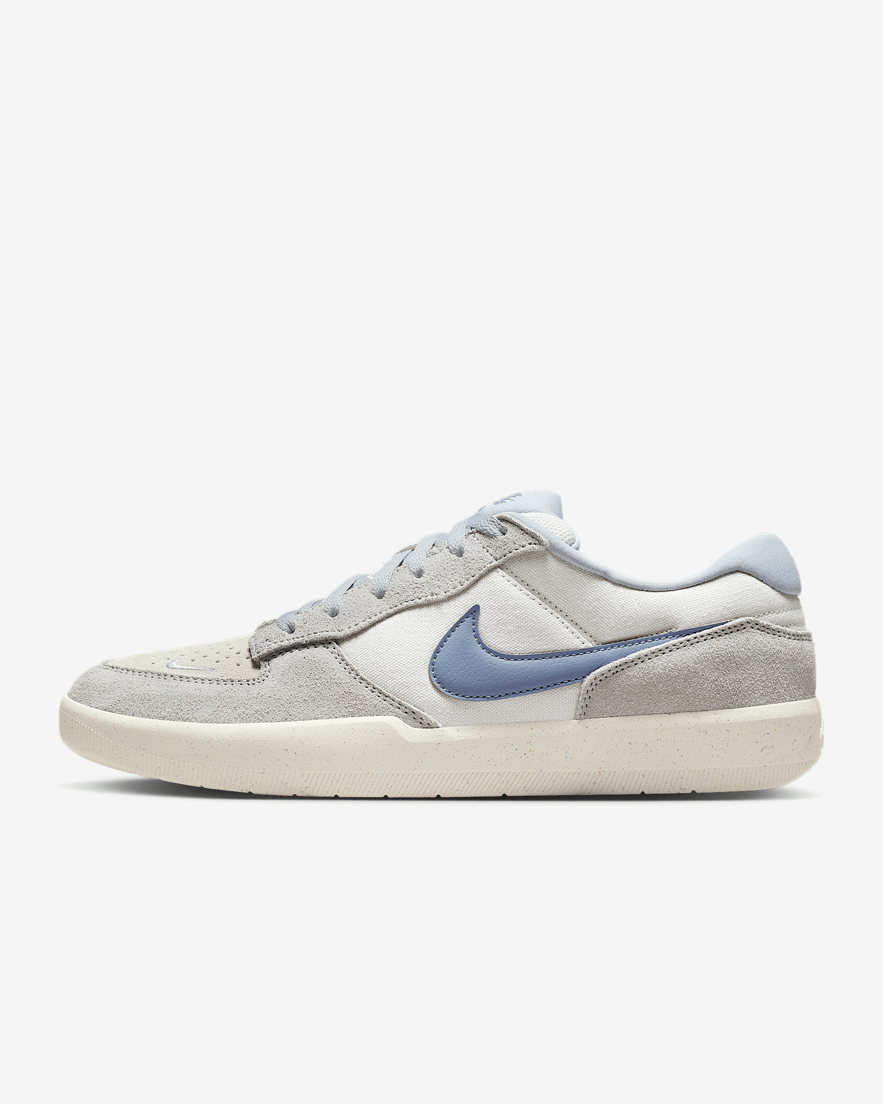 The Force 58 gives you the durability of a cupsole with the flexibility of vulcanized shoes. Translation? Less time for break-in, more time to skate. Made with textiles, suede and finished with perforations on the toe, the whole look is infused with heritage basketball DNA. Benefits - Suede and textiles work together to balance durability and breathability. - Perforations and a Swoosh logo on the toe are a nod to heritage basketball styles. - Tri-star shapes on the sole expand and contract for better grip and boardfeel right out of the box. - Stretchy inner gusset hugs your foot to help keep your shoe on if your laces blow out. Product Details - Shown: White/Sail/Wolf Grey/Ashen Slate - Style: IH0636-141