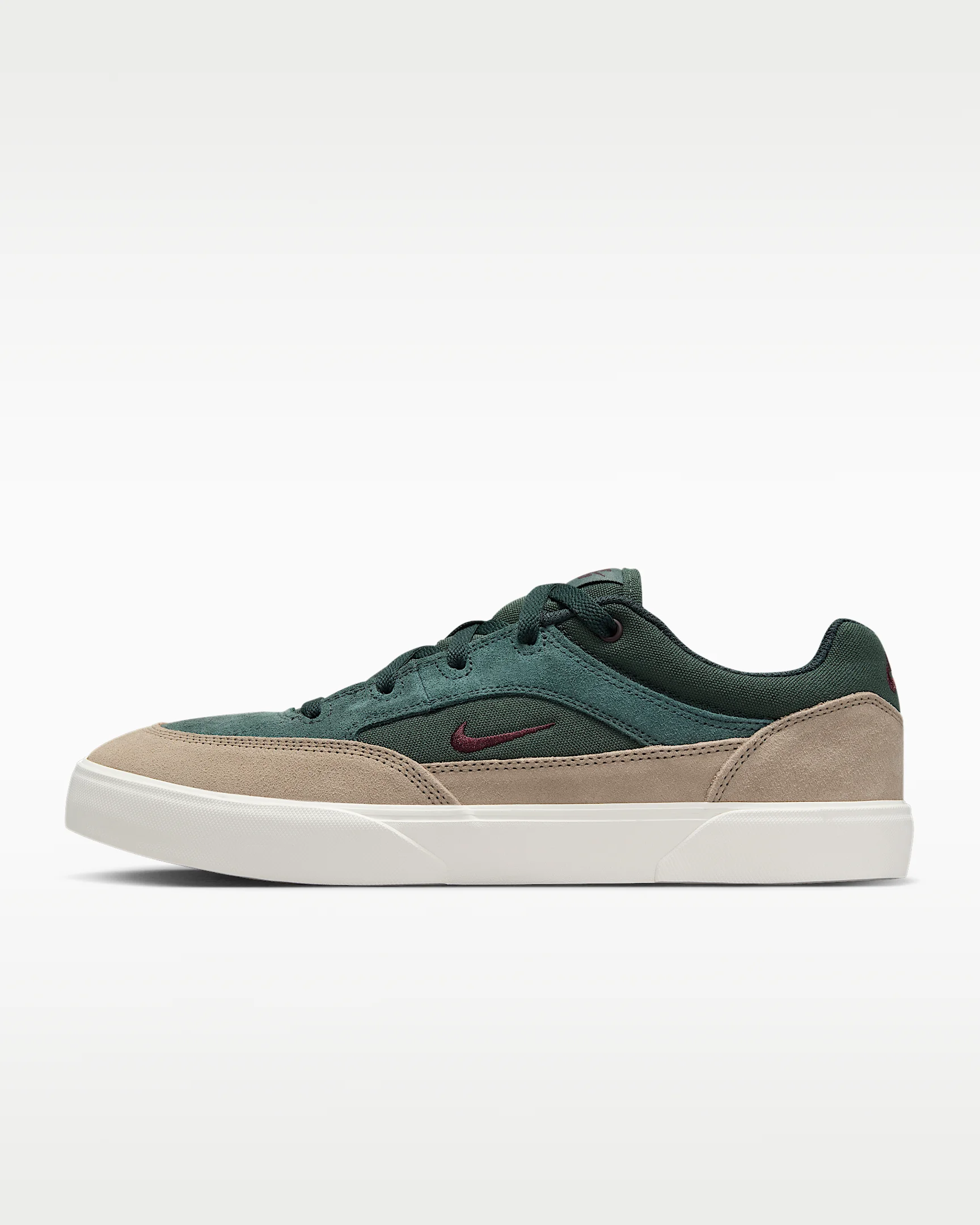 Destroy this shoe! The SB Malor was designed for entry-level skaters who need a shoe that can handle long hours of practice honing their skills. Layers of suede and canvas keep it durable, while the outsole combines a herringbone pattern with the Air Force 1 circular pattern to help accentuate both grip and movement. Step in, the Malor is ready to get shredded. Benefits - Suede and canvas upper creates a classic look that’s built to last. - Vulcanized construction fuses the sole to the upper for a flexible, broken-in feel. - Extended toe bumper adds extra durability. - Cushioned tongue and collar for added padding. Product Details - Rubber midsole - Rubber outsole - Shown: Seaweed/Khaki/Phantom/Burgundy Crush - Style: FV6064-300
