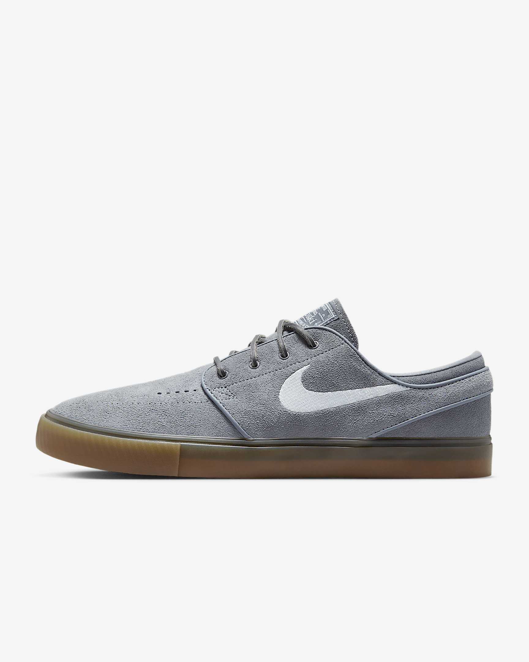 Coming in hot after a year of R&R (research and redesign), the Janoski continues the journey of Stefan's signature skateboarding line. Skate-specific tread helps deliver great boardfeel and flick. A reengineered upper helps give you better fit and comfort, opening the door for next-level performance. Benefits - Suede upper is soft and durable. - Vulcanized construction fuses the sole to the upper for a flexible, broken-in feel. - Snappy and responsive, Zoom Air cushioning helps provide a quick-off-the-ground sensation. Product Details - 2 sets of laces - Shown: Cool Grey/Cool Grey/Gum Light Brown/White - Style: FD6757-003