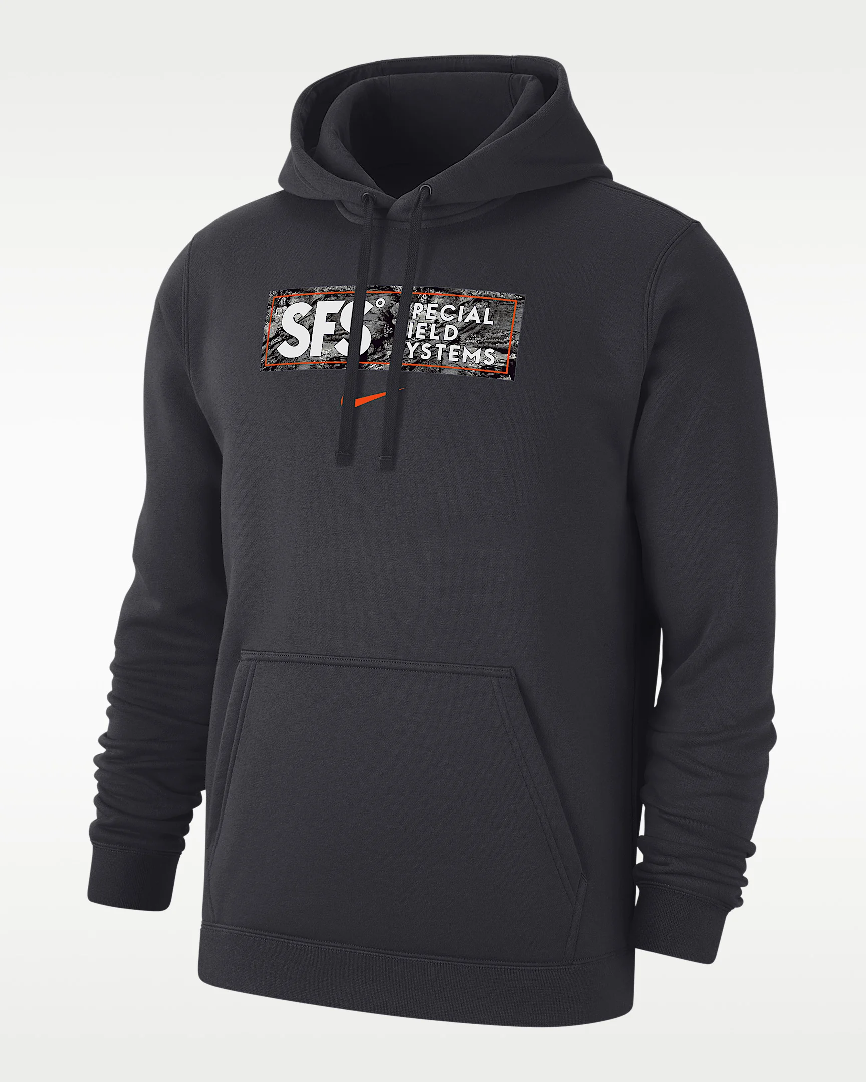 Honor those who defend and protect in this pullover hoodie. Made with soft fleece and a classic fit, the Nike SFS Club hoodie offers a casual feel ideal for everyday wear. Product Details - Front pocket - 80% cotton/20% polyester - Machine wash - Imported - Shown: Anthracite - Style: M31777SFHD-ANT