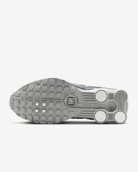 A recrafted version of the 2000 icon, the Nike Shox R4 replicates the original with its synthetic and textile upper, design lines and laser perforations. Nike Shox cushioning distributes weight to maximize comfort and provides a performance-inspired look. Benefits - Originally designed to support the stride of runners, Nike Shox columns provide responsive cushioning. - Synthetic and textile upper is a near-exact replica of the original 2001 Nike Shox. - Modified, circular Waffle outsole gives traction. - Laser perforations throughout provide ventilation. Product Details - Reflective details - Not intended for use as Personal Protective Equipment (PPE) - Shown: Summit White/Hydrangeas/Metallic Silver/Summit White - Style: IB7703-100