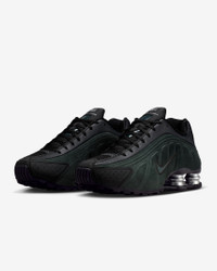 A recrafted version of the early 2000s icon, the Shox R4 keeps the original design lines and enhances its performance-inspired look with premium suede and leather. Nike Shox columns in the heel distribute weight to maximize comfort while providing bold style on the streets. Benefits - Suede and leather upper adds durability, while laser perforations allow breathability. - Nike Shox columns provide resilient cushioning. - Modified, circular Waffle outsole gives you durable traction. Product Details - Not intended for use as Personal Protective Equipment (PPE) - Shown: Black/Metallic Silver/Seaweed - Style: HQ7739-002