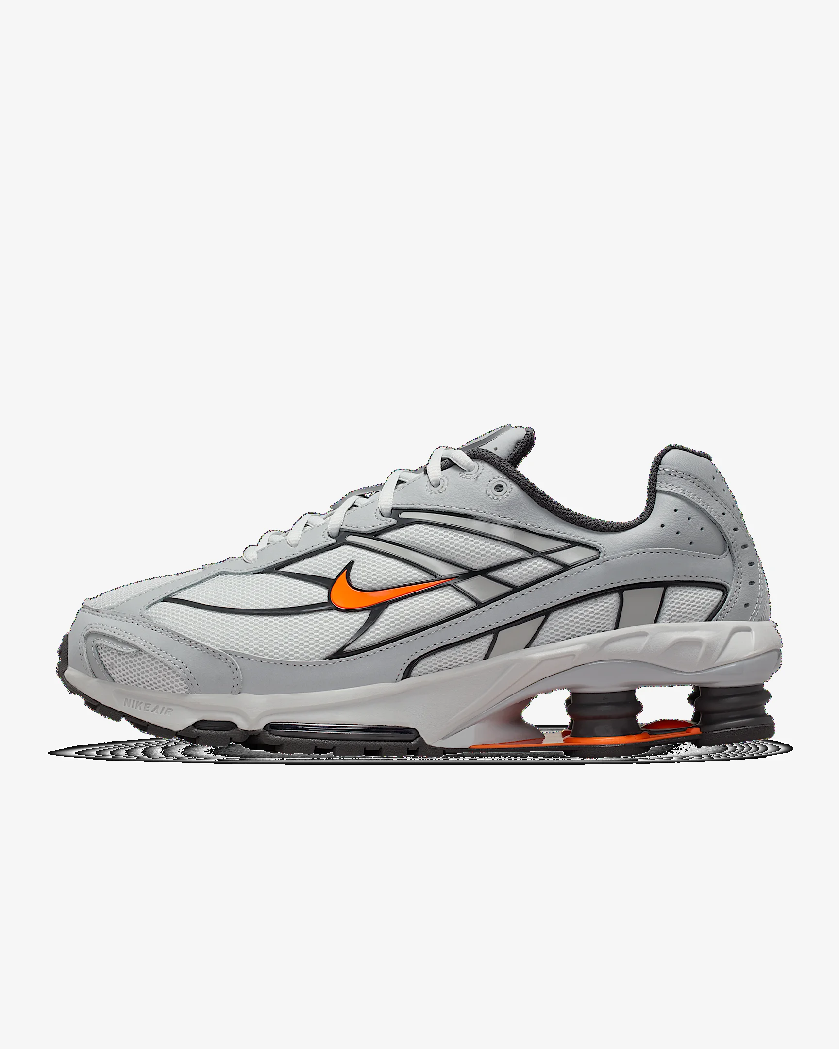 A modern classic, this Nike Shox Ride 2 offers outstanding responsive cushioning with four columns of support under its heel and Max Air technology in the forefoot. And the breathable textile and leather upper is comfortable and durable. Benefits - Plush and comfortable, Max Air cushioning has just the right amount of support. - Leather overlays add durability and a premium finish. Product Details - Foam midsole - Rubber outsole - Shown: Photon Dust/Light Smoke Grey/Medium Ash/Total Orange - Style: IO4296-004