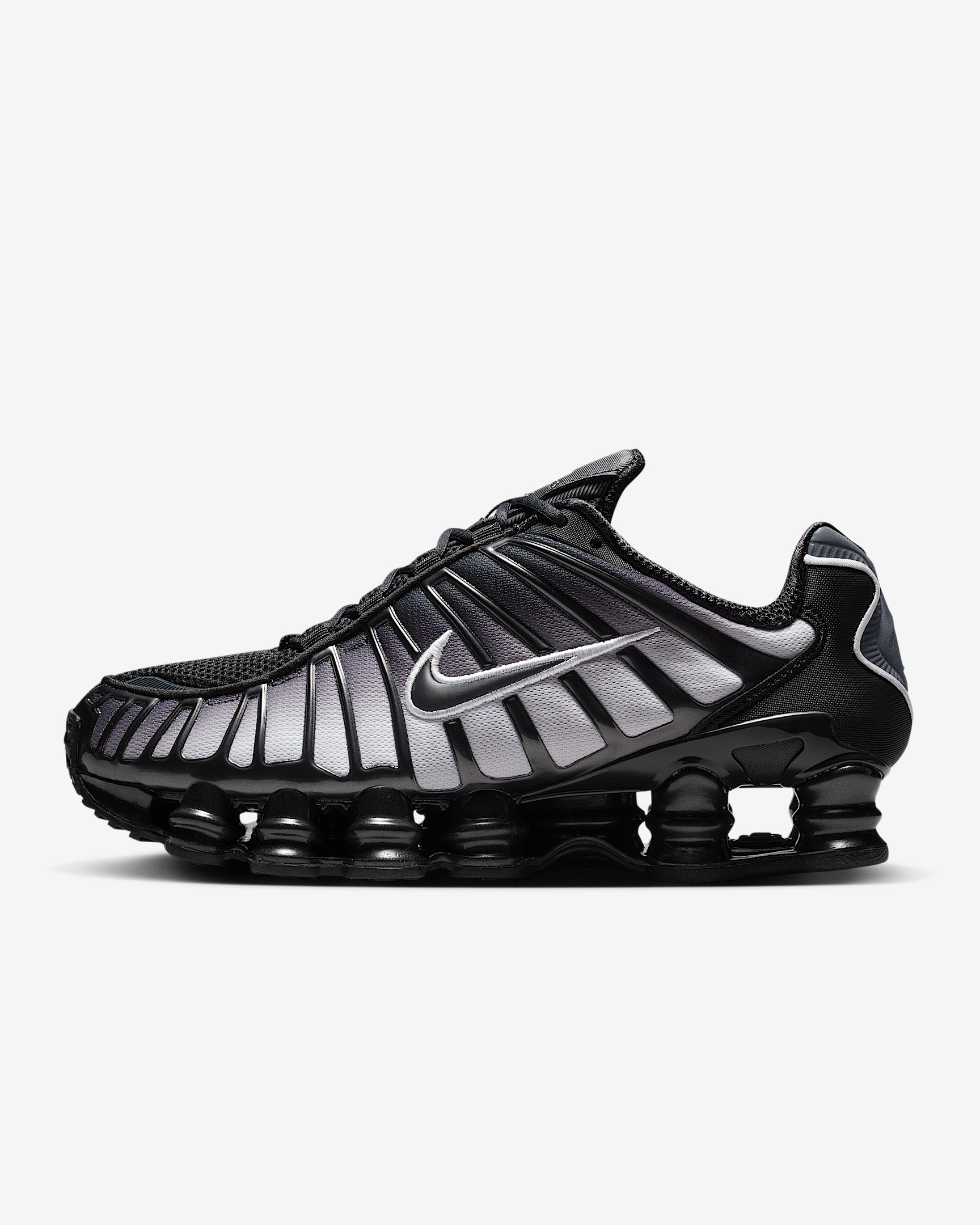 The 2003 icon returns in a gradient colorway and signature style. The classic overlays and full-length cushioning columns are sure to turn heads once again. Benefits - Nylon mesh upper creates a breathable feel. - Nike Shox columns provide resilient cushioning. - Molded overlays wrap the midfoot for a snug fit. - Sturdy plate in the heel, between the midsole and the Nike Shox cushioning, helps provide lateral stability and support. Product Details - Foam midsole - Rubber outsole - Not intended for use as Personal Protective Equipment (PPE) - Shown: Off Noir/Black/White - Style: IH1336-002