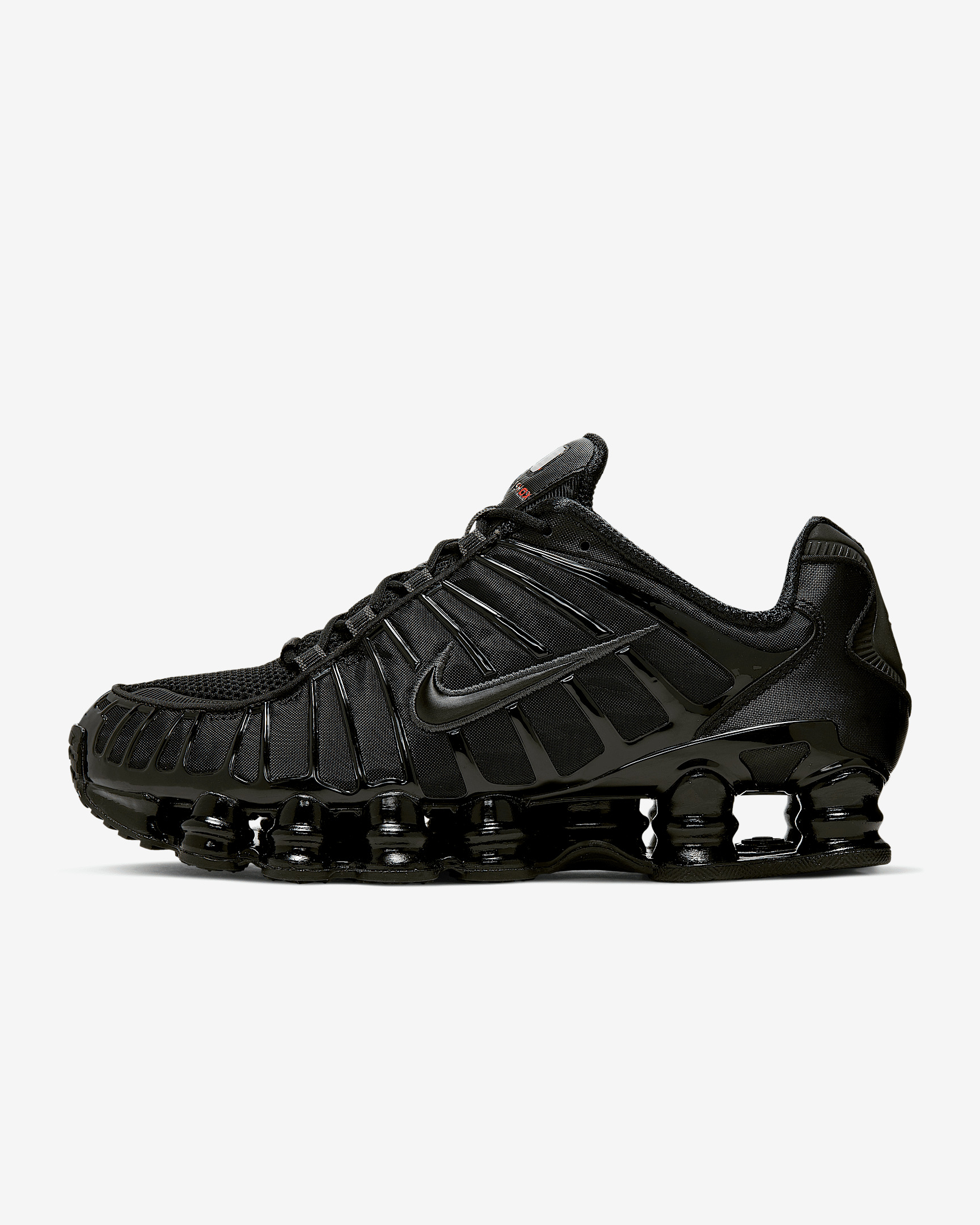 The Nike Shox TL takes mechanical cushioning to the next level. A recrafted version of the 2003 icon, it features breathable mesh in the upper and full-length Nike Shox technology for optimal impact absorption and a bold look on the streets. Benefits - Nike Shox technology combines resilient, flexible columns with moderator plates for outstanding cushioning that compresses and regains its shape. - A combination upper with a full TPU cage is a near-exact replica of the 2003 Nike Shox TL. - Molded overlays throughout the midfoot provide support and a snug fit. - A TPU plate in the heel between the midsole and Nike Shox technology helps provide lateral stability and support. - A foam midsole provides lightweight cushioning. - Non-marking, solid rubber in a modified waffle outsole gives great traction and durability. Product Details - Synthetic and textile upper - Not intended for use as Personal Protective Equipment (PPE) - Shown: Black/Metallic Hematite/Max Orange/Black - Style: AV3595-002