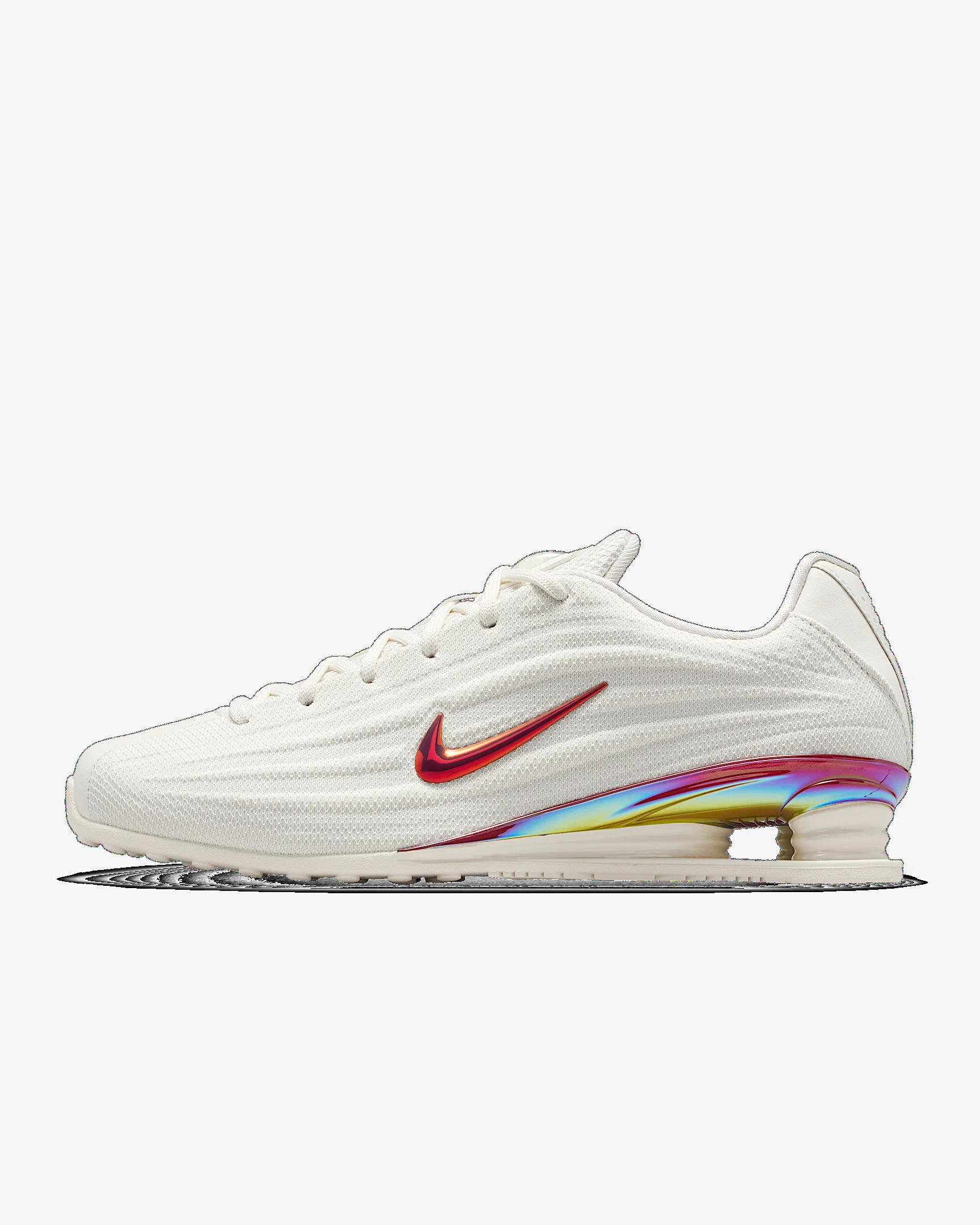 Sleek, low-profile and femme: Your favorite retro runner has reached its next evolution. The Shox Z's slim, stitchless upper sits atop a fresh take on the iconic column design for a look that blends sporty and the sartorial. Bold details, like the vibrant Nike Swoosh and metallic accents, complement the all-black aesthetic. Benefits - Originally designed to support the stride of runners, Nike Shox columns provide responsive cushioning. - Modified, circular waffle outsole gives traction. Product Details - Shown: Phantom/Metallic Silver/Multi-Color - Style: IM6051-002