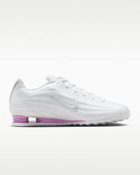 Your favorite retro runner has reached its next evolution. The Shox Z has a slim, low-profile shape and a new take on the iconic column design. Benefits - Textile upper is light and breathable, and synthetic leather accents channel original Shox style. - Nike Shox columns provide resilient cushioning. - Modified, circular Waffle outsole gives you durable traction. Product Details - Shiny finishes - Foam midsole - Rubber outsole - Shown: White/Light Magenta - Style: HQ7540-101