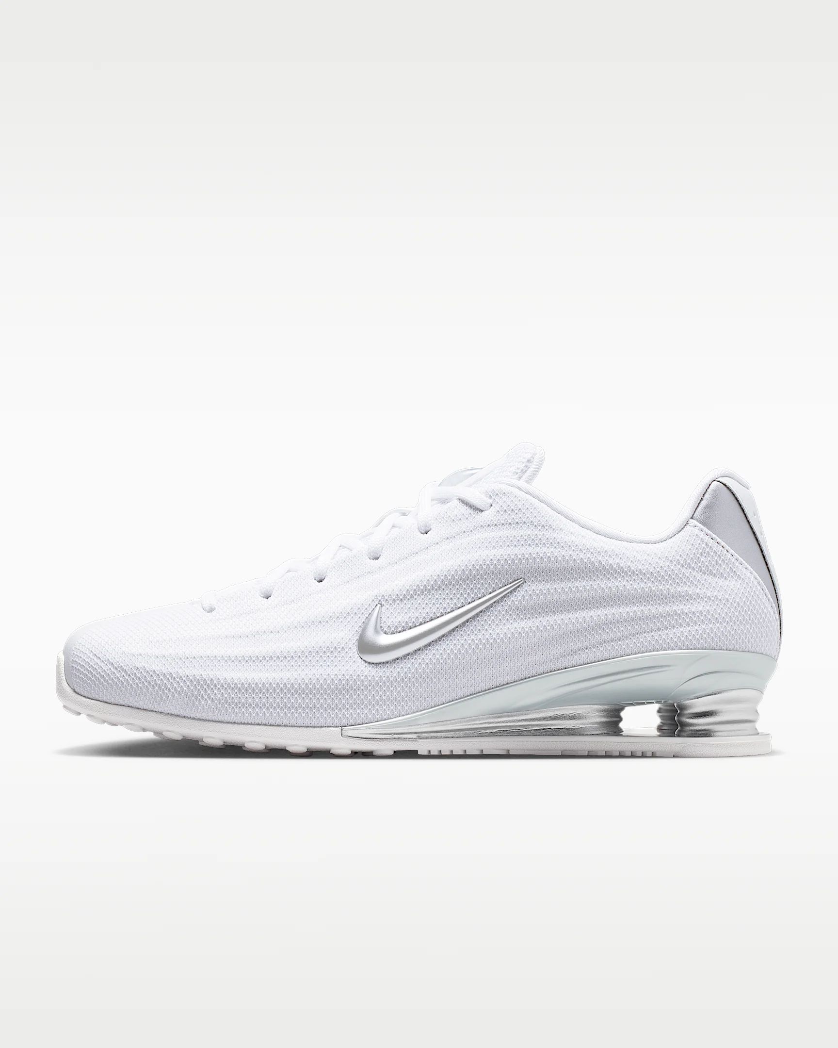Your favorite retro runner has reached its next evolution. The Shox Z has a slim, low-profile shape and a new take on the iconic column design. Benefits - Textile upper is light and breathable, and synthetic leather accents channel original Shox style. - Nike Shox columns provide resilient cushioning. - Modified, circular Waffle outsole gives you durable traction. Product Details - Shiny finishes - Foam midsole - Rubber outsole - Shown: White/Metallic Silver - Style: HQ7540-103