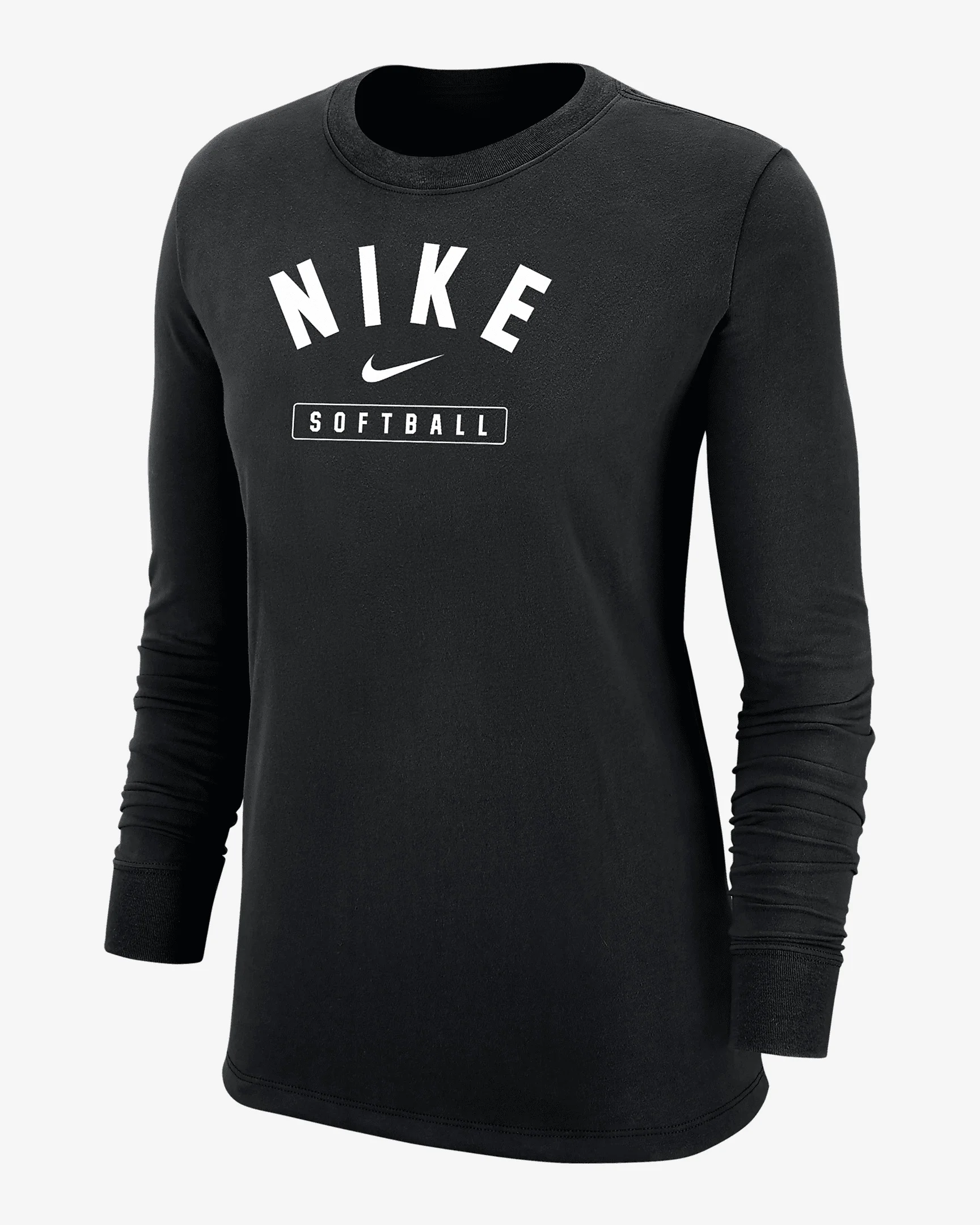 For some of us, it's more than a game. Show everyone what it means to you in this classic Nike softball shirt. Product Details - 80-100% cotton/0-20% polyester - Material percentages may vary. Check label for actual content. - Machine wash - Imported - Shown: Black - Style: W12103P384-BLK