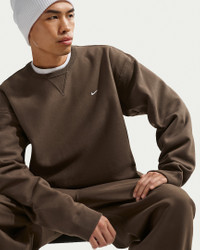 Warm and structured, this sweatshirt is crafted with heavyweight brushed fleece that feels plush on the inside and smooth on the outside, bringing a touch of luxury to your casual, cool-weather layers. The loose fit feels roomy through the body. Product Details - Embroidered Nike Swoosh logo - Ribbed openings - Body: 84-85% cotton/15-16% polyester. Rib: 98% cotton/2% spandex - Material percentages may vary. Check label for actual content. - Machine wash - Imported - Shown: Dark Hazel/White - Style: HV1086-212 SIZE & FIT Model is wearing size M and is 5'11"180cm Loose fit: roomy and relaxed