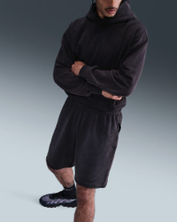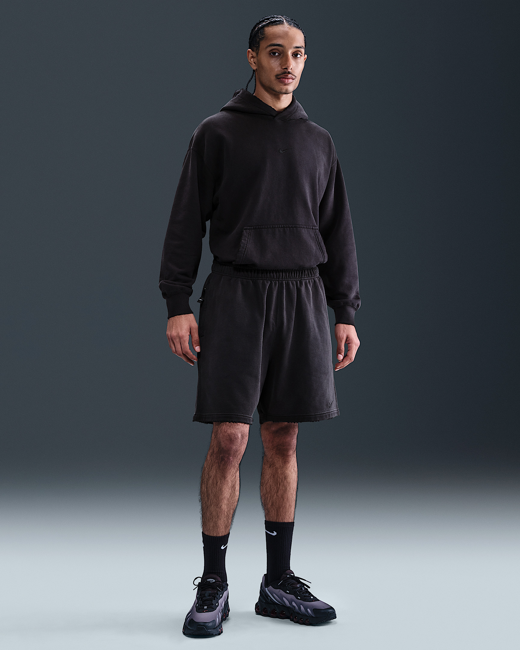 These structured French Terry fleece shorts feature a roomy fit designed to hit above the knee with distressed details and a vintage wash to add a broken-in feel. Product Details - Elastic waistband with drawcord - Hand pockets - Body: 88% cotton/12% polyester. Pocket bags: 100% cotton. - Machine wash - Imported - Shown: Black/Black - Style: IB8955-010 SIZE & FIT Model is wearing size M and is 6′1″185cm Big & Tall model is wearing size 3XL and is 6'5"196cm Oversized fit: exaggerated and spacious