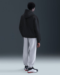 Bring a touch of luxury to your casual, cool-weather layers with this warm and structured hoodie. It's crafted with a heavyweight brushed fleece that feels plush on the inside and smooth on the outside. Benefits - Loose fit feels roomy through the body. - Single-panel, lined hood is equipped with a drawcord for adjusting the fit. Product Details - Embroidered Nike Swoosh logo - Divided kangaroo pocket - Two-way zipper - Ribbed openings - Body: 84-85% cotton/15-16% polyester. Hood lining: 84-85% /cotton/15-16% polyester. - Material percentages may vary. Check label for actual content. - Machine wash - Imported - Shown: Black/Black/White - Style: HV1084-010 SIZE & FIT Model is wearing size M and is 6′1″185cm Loose fit: roomy and relaxed