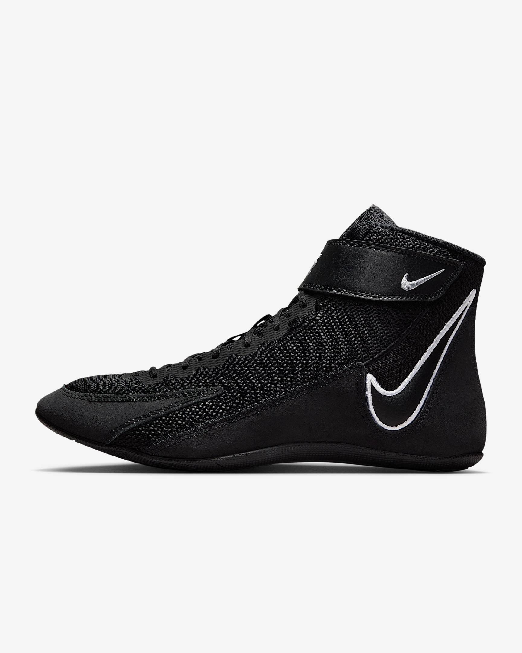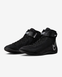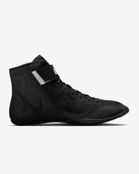 When the opportunity presents itself, make your move in the Nike Speedsweep 8. Its breathability and support are built to give you confidence long into the third period. The above-the-ankle collar helps form to your foot, while the one-piece outsole helps you move freely. Benefits - Open-hole mesh adds breathability. - Suede provides support. - Adjustable strap helps secure your foot. - Rubber outsole gives you traction for quick moves on the mat. - This model comes with traditional laces, but you can hide them beneath the ankle strap. Product Details - Shown: Black/Black/Wolf Grey/White - Style: HF9132-001