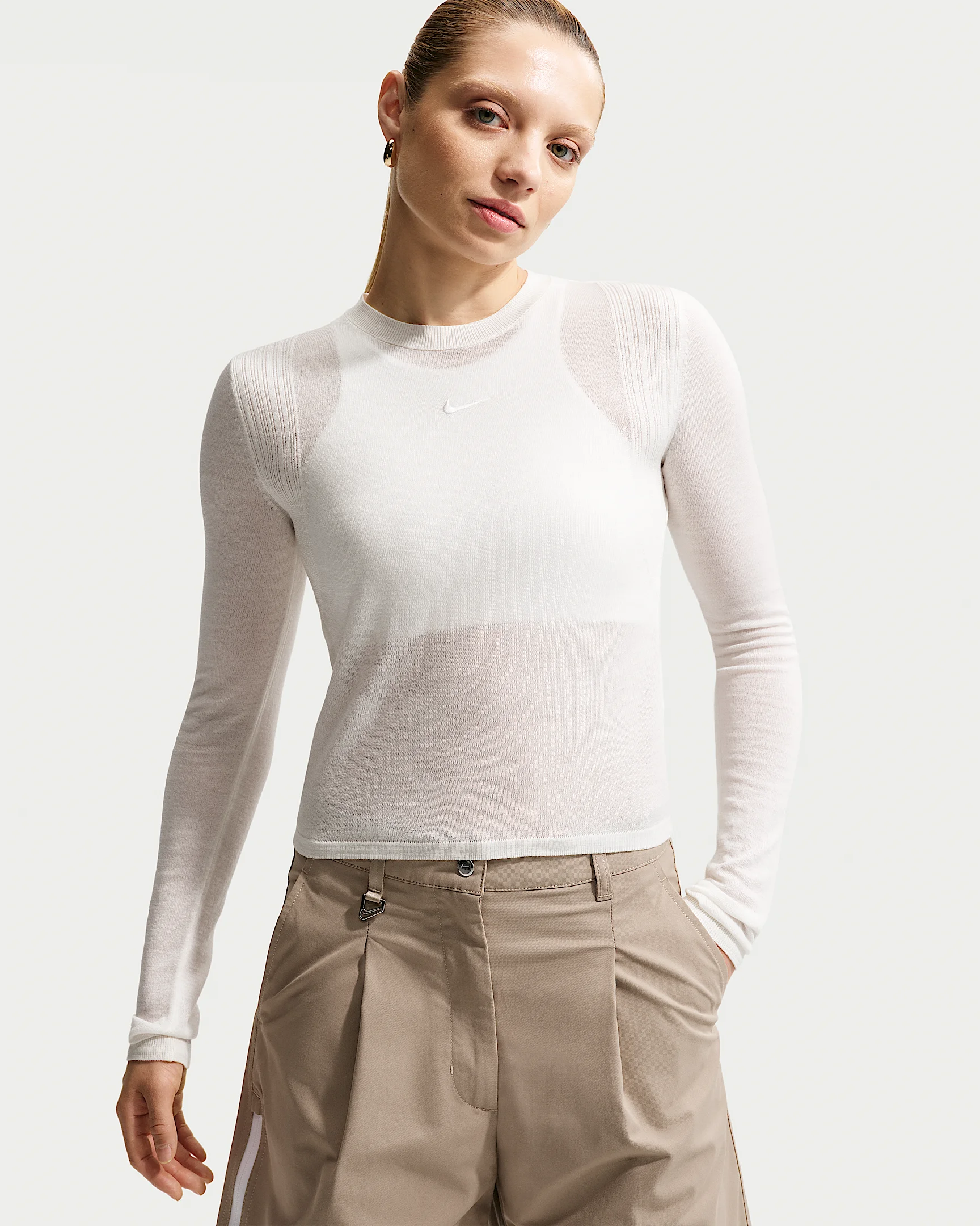 Refined construction, liquid-like detailing, all rooted in Nike's intricate DNA. We're keeping things Airreverent with this tight-fitting top, made of a wool and polyester blend. It brings minimalistic elegance to the 'fit through tonal branding and detailed stitch lines at the shoulder. Product Details - 49% polyester/49% wool/1% Nylon, 1% spandex - Machine wash - Imported - Shown: Summit White - Style: IQ0429-121 SIZE & FIT Model is wearing size S and is 5′10″178cm Tight fit: snug and form-fitting