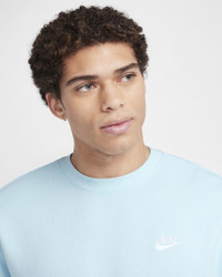 A closet staple, the Nike Sportswear Club Fleece Crew combines a classic embroidered logo on the left chest with the soft comfort of fleece for an elevated everyday look. Product Details - Standard fit for a relaxed, easy feel - Fabric: 80-82% cotton/18-20% polyester - Machine wash - Imported - Note: Material percentages may vary depending on factory. Check label for actual content. - Shown: Glacier Blue/White - Style: BV2662-474 SIZE & FIT Standard fit: easy and traditional