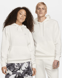 A closet staple, the Nike Sportswear Club Fleece Pullover Hoodie combines classic style with the soft comfort of fleece. Product Details - Standard fit for a relaxed, easy feel - Ribbed hem and cuffs - Kangaroo pocket - Fabric: Body: 80-82% cotton/18-20% polyester. Hood lining: 100% cotton. - Machine wash - Imported - Note: Material percentages may vary depending on factory. Check label for actual content. - Shown: Sail/Sail/White - Style: BV2654-134 SIZE & FIT <p>Female model is wearing size XS and is 5'8"173cm<p> <p>Male model is wearing size M and is 6'0"183cm<p> Big & Tall model is wearing size 3XL and is 6'1"185cm Standard fit: easy and traditional If you typically wear men's styles, please select your usual size. If you typically wear women's styles, please size down.