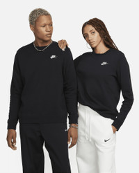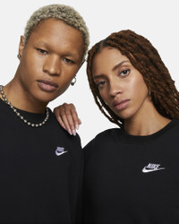 Club Fleece sweatshirts, universally loved for their coziness and consistency, are for everyone. Always soft and made with a relaxed fit, they’re basics that help you do more. An essential for cold-weather layering, this crew-neck option is a quick and easy way to add warmth to your favorite puffer or jacket. Benefits - Our best-selling fleece for a reason, Club Fleece has a cozy, familiar feel and consistent fit you can return to again and again. Brushed for added warmth and softness, it’s an ideal layer for colder temperatures. - Ribbing at the hem and cuffs is soft and stretchy for easy layering. Product Details - 80% cotton/20% polyester - Embroidered Futura logo - Ribbed hem and cuffs - Machine wash - Imported - Shown: Black/White - Style: DQ5473-010 SIZE & FIT Female model is wearing size S and is 5'10"178cm Male model is wearing size M and is 6'2"188cm Standard fit: easy and traditional Fits small; we recommend ordering a size up